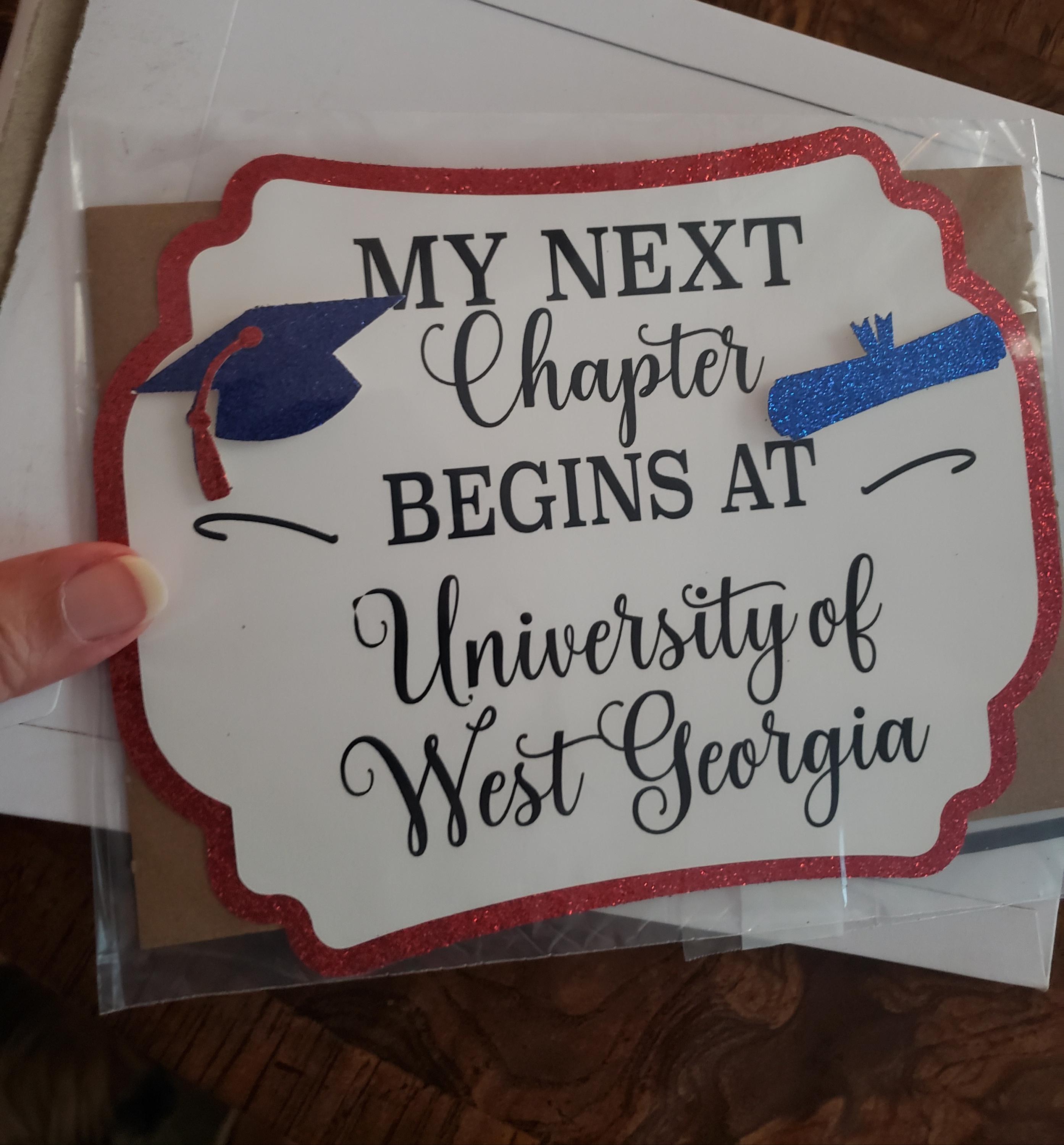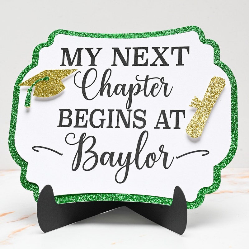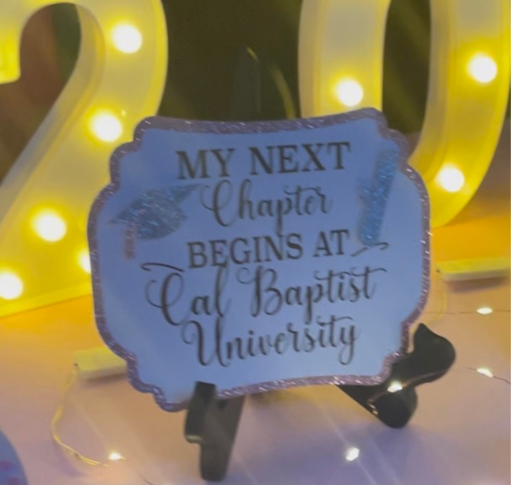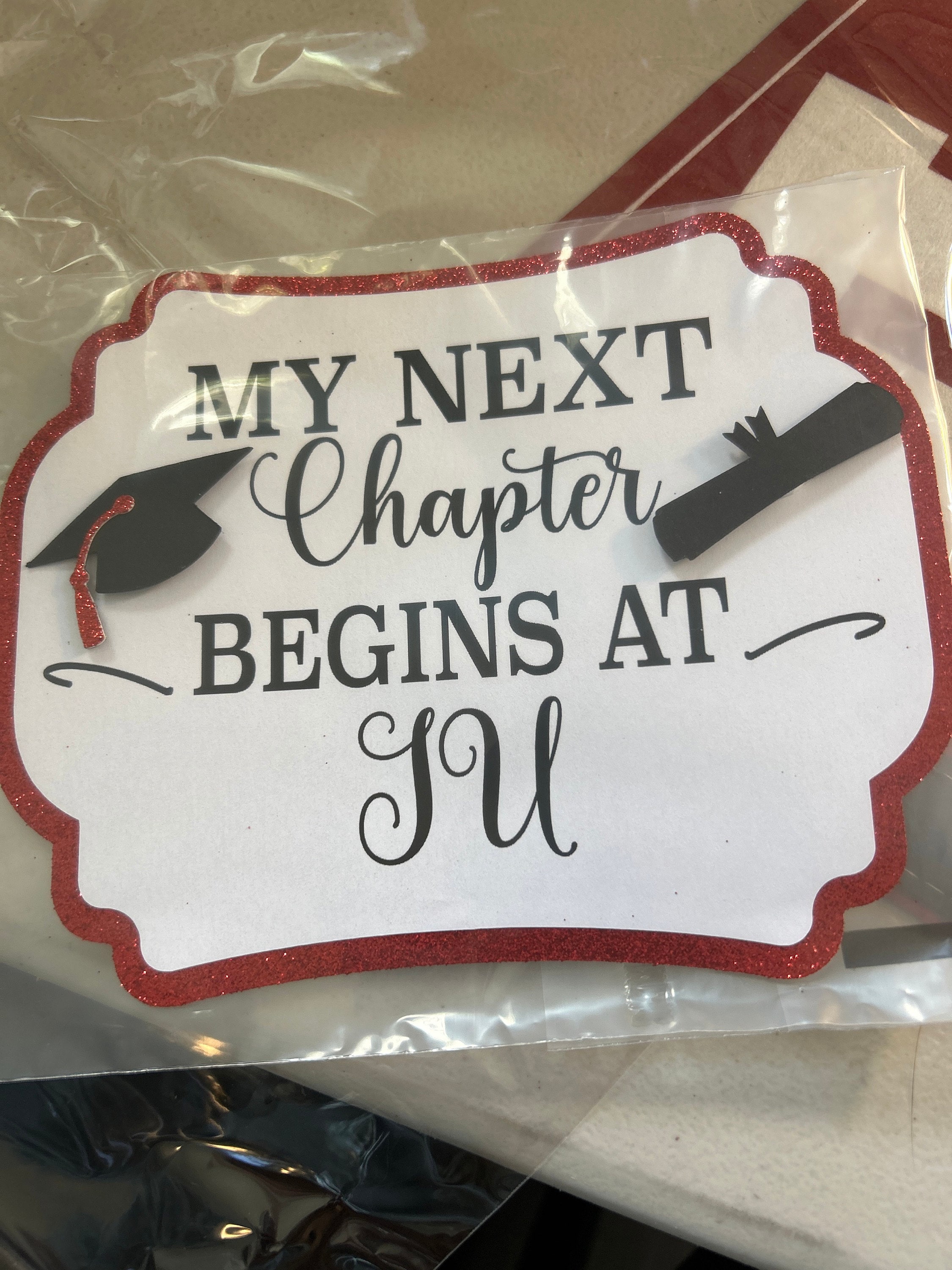 Step into the future with style and flair using our charming 5"x7" "My Next Chapter Begins At" Graduation Table Sign! This elegant and versatile table sign is the perfect addition to your 2025 graduation decor, adding a touch of sophistication and sentiment to your special day.