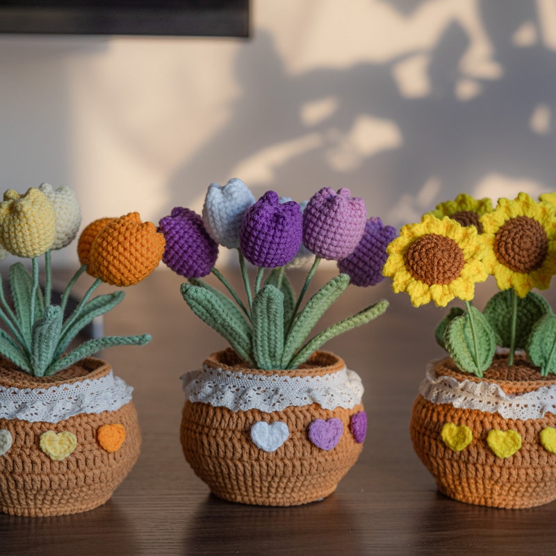 【Free Gift】If the order amount is over $50, you will get an extra crochet gift flower or mini flower pot, such as rose, tulip, lavender, lily of the valley, sunflower and carnation, etc.