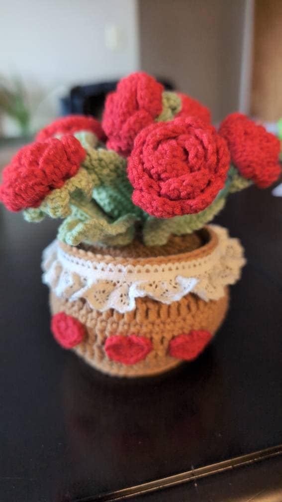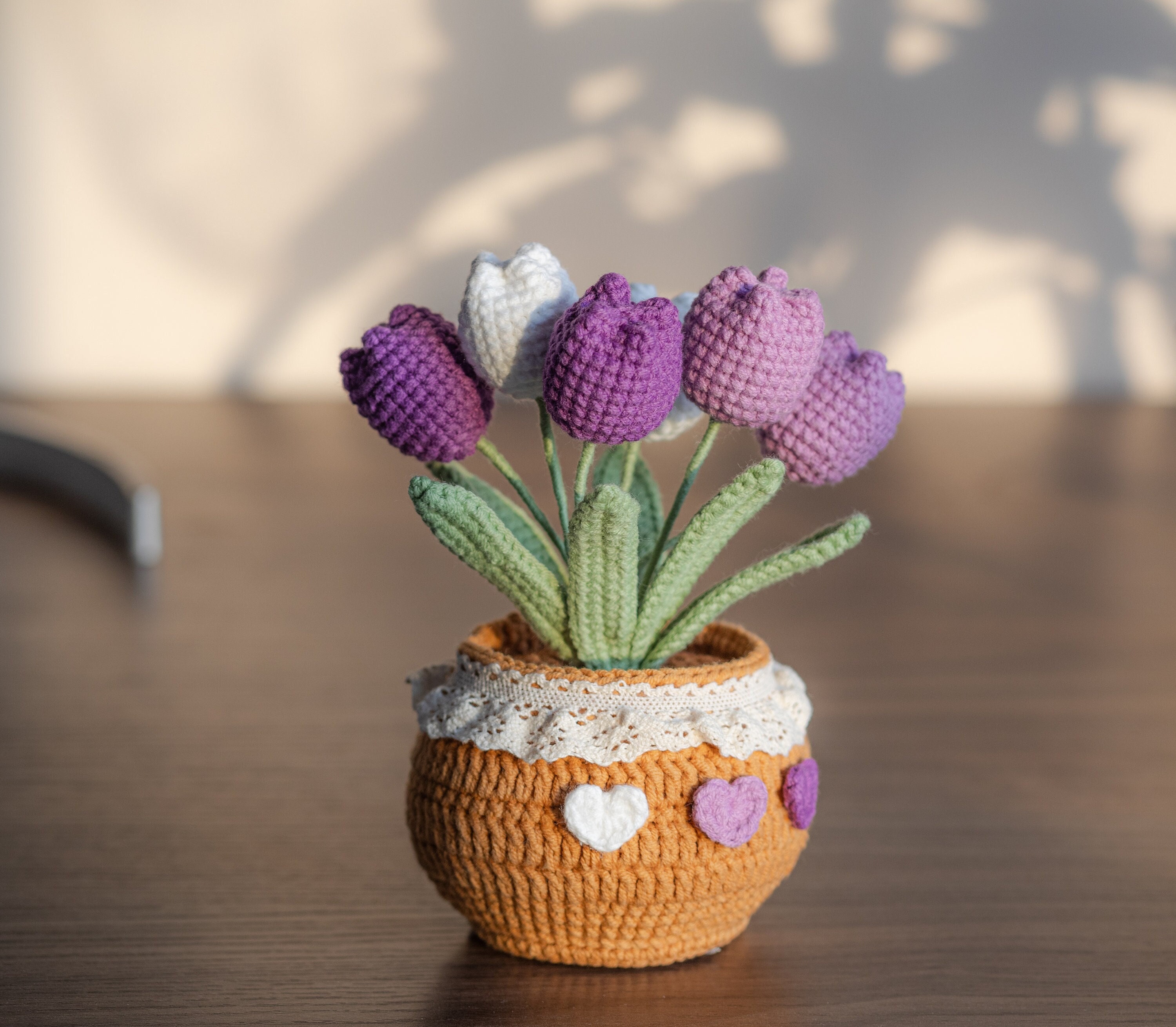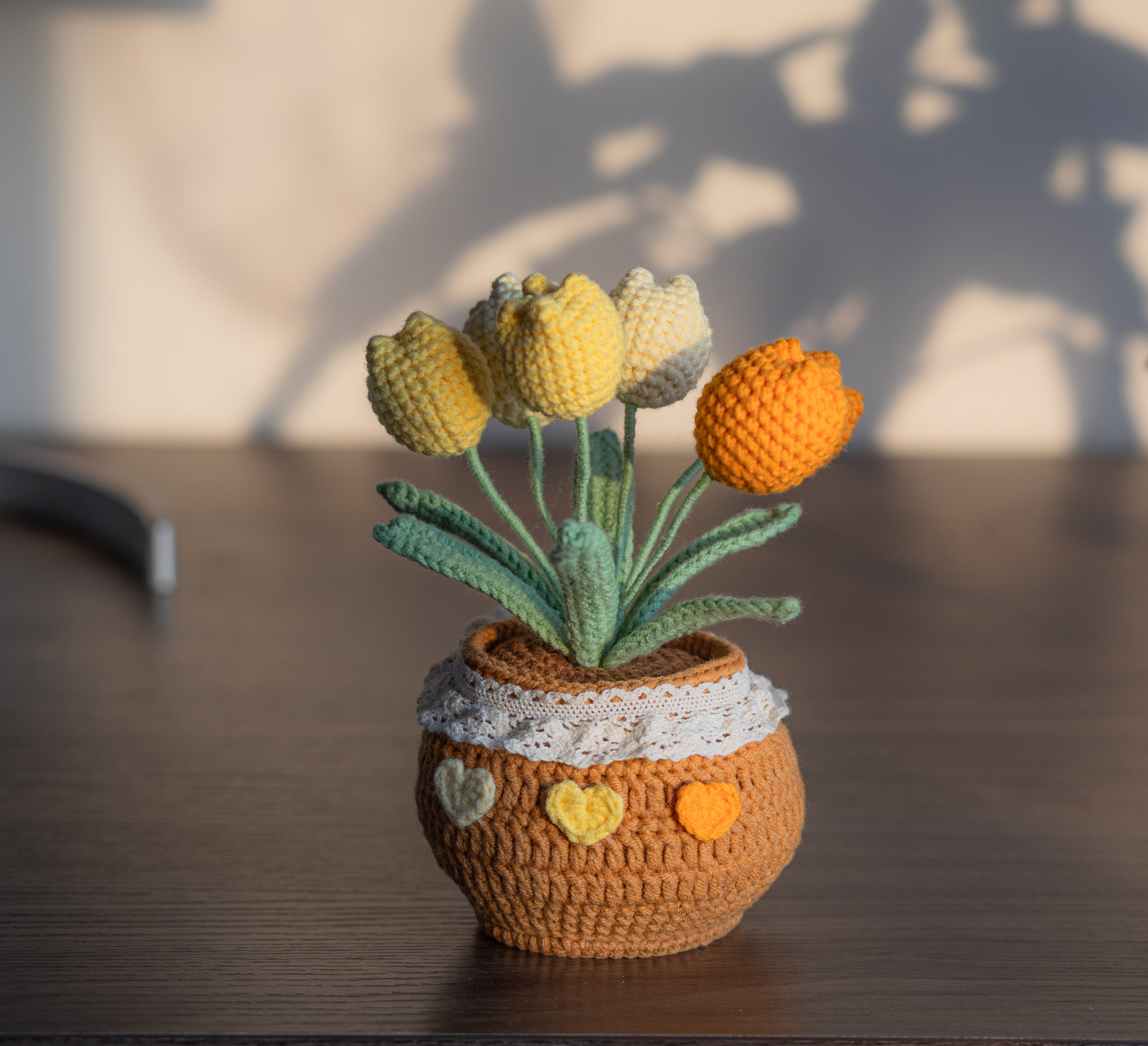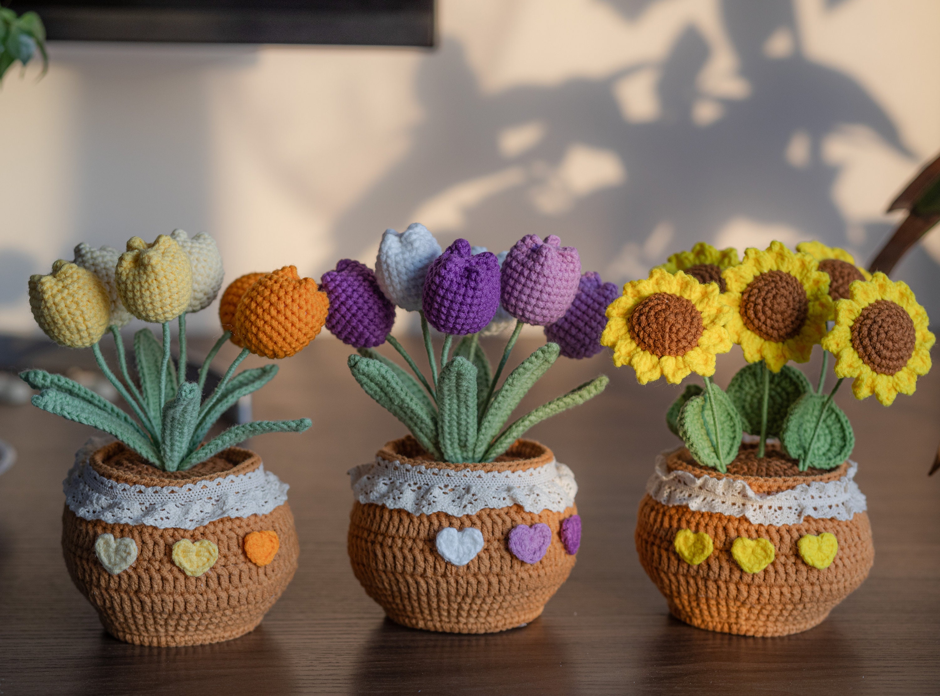 The crochet bouquets are all 100% handmade with unparalleled and highest quality yarn. Even after long-term use, it can maintain the best shape and will not pill like ordinary yarn.