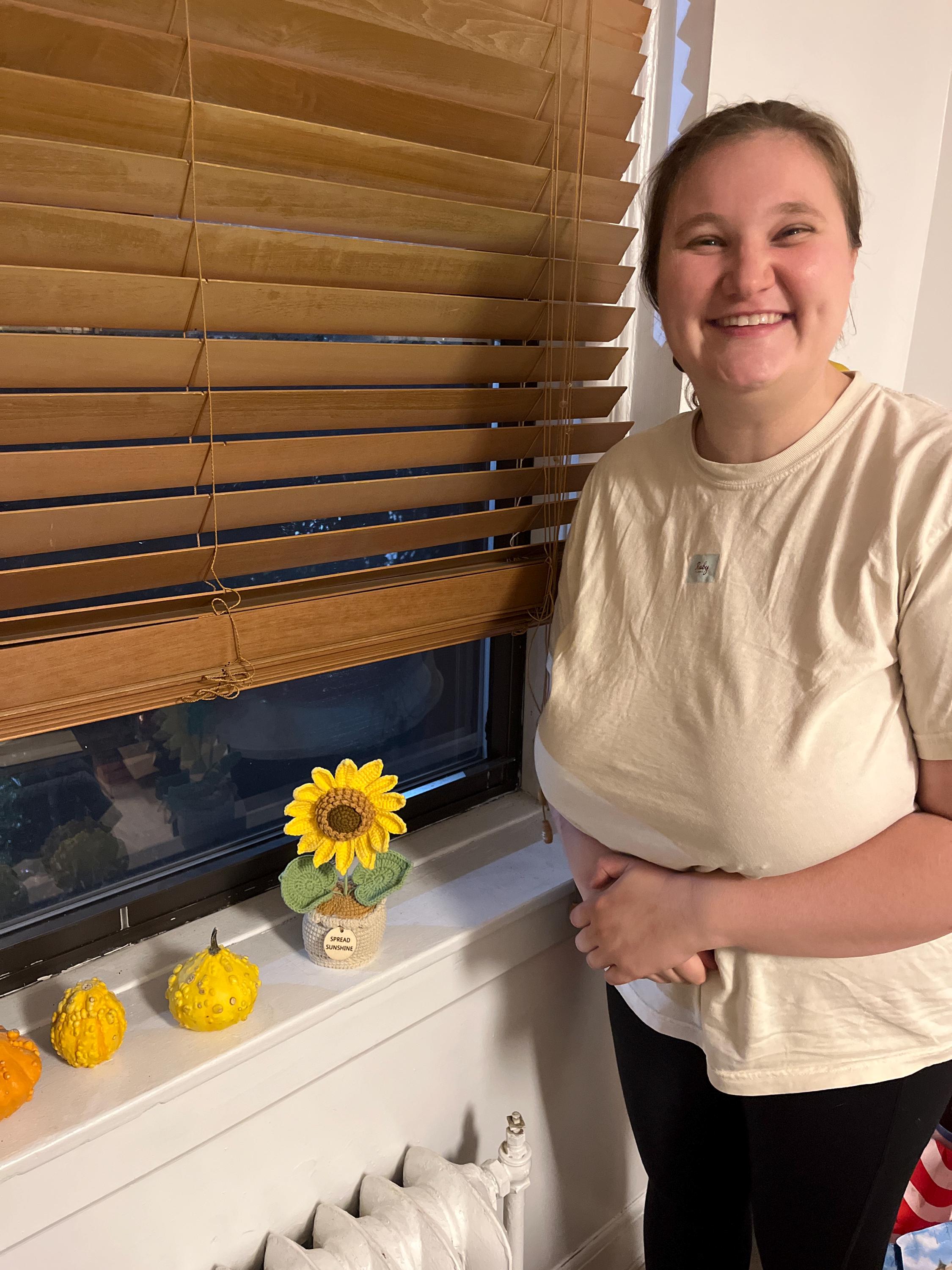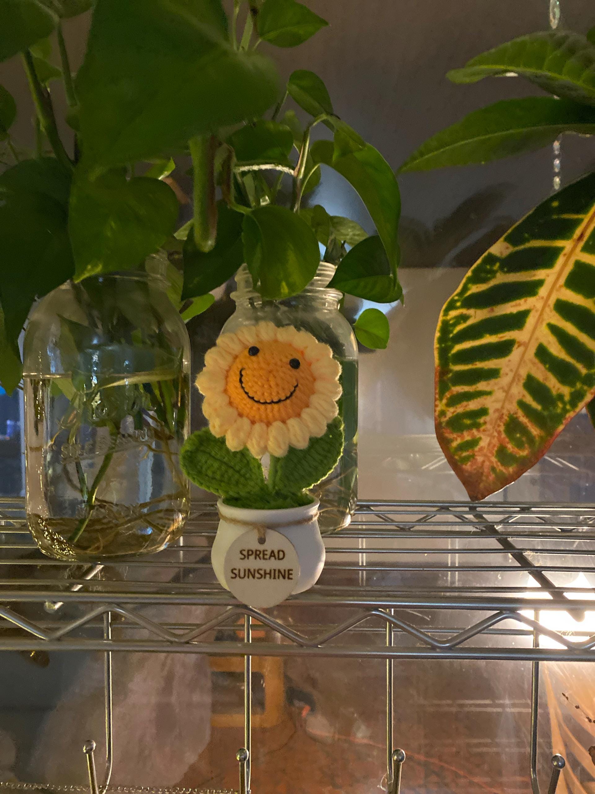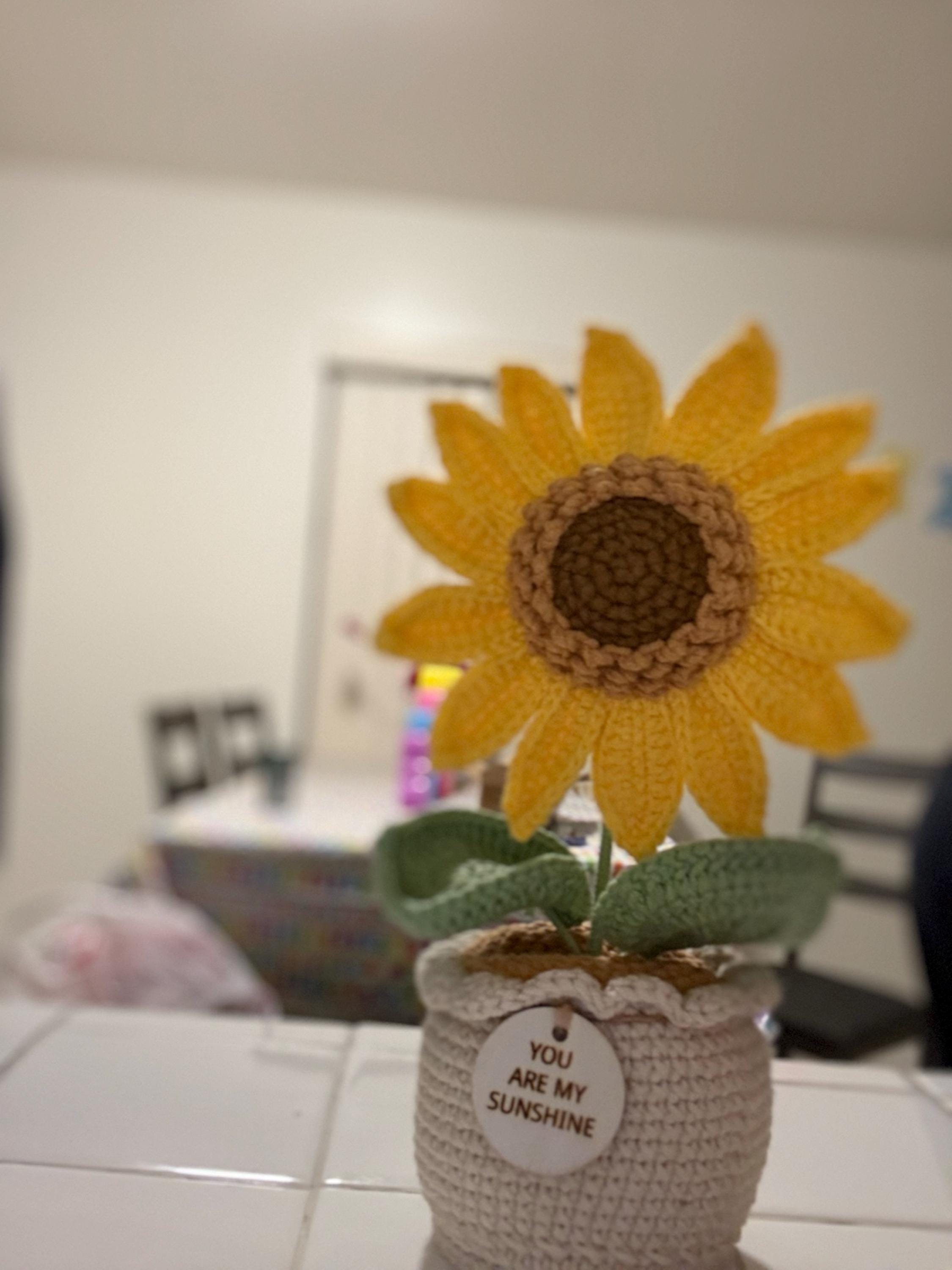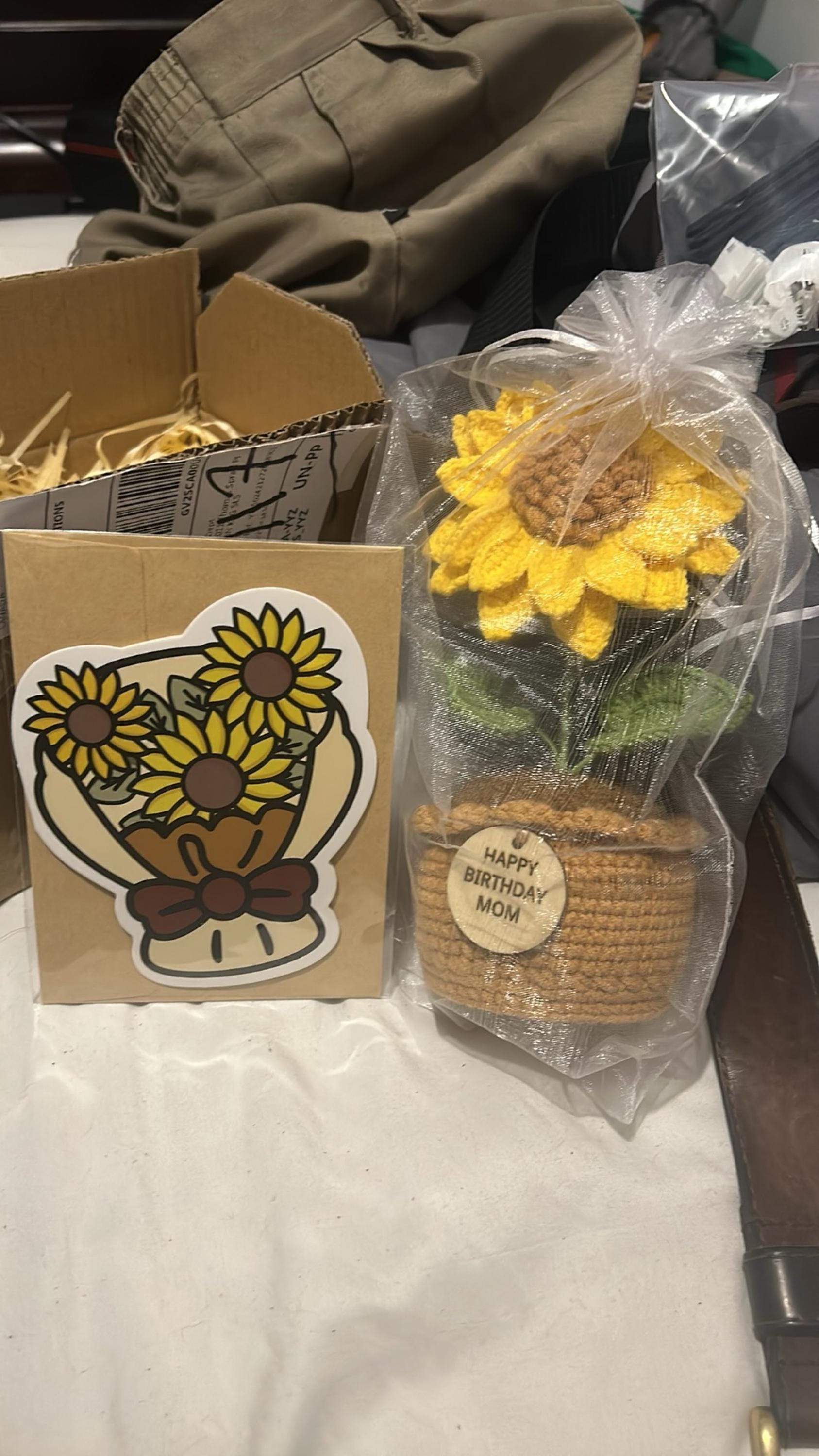 Personalized Touch: Customize your crochet sunflower with an engraved wooden tag, adding a meaningful and uplifting message, perfect for yourself or as a gift.