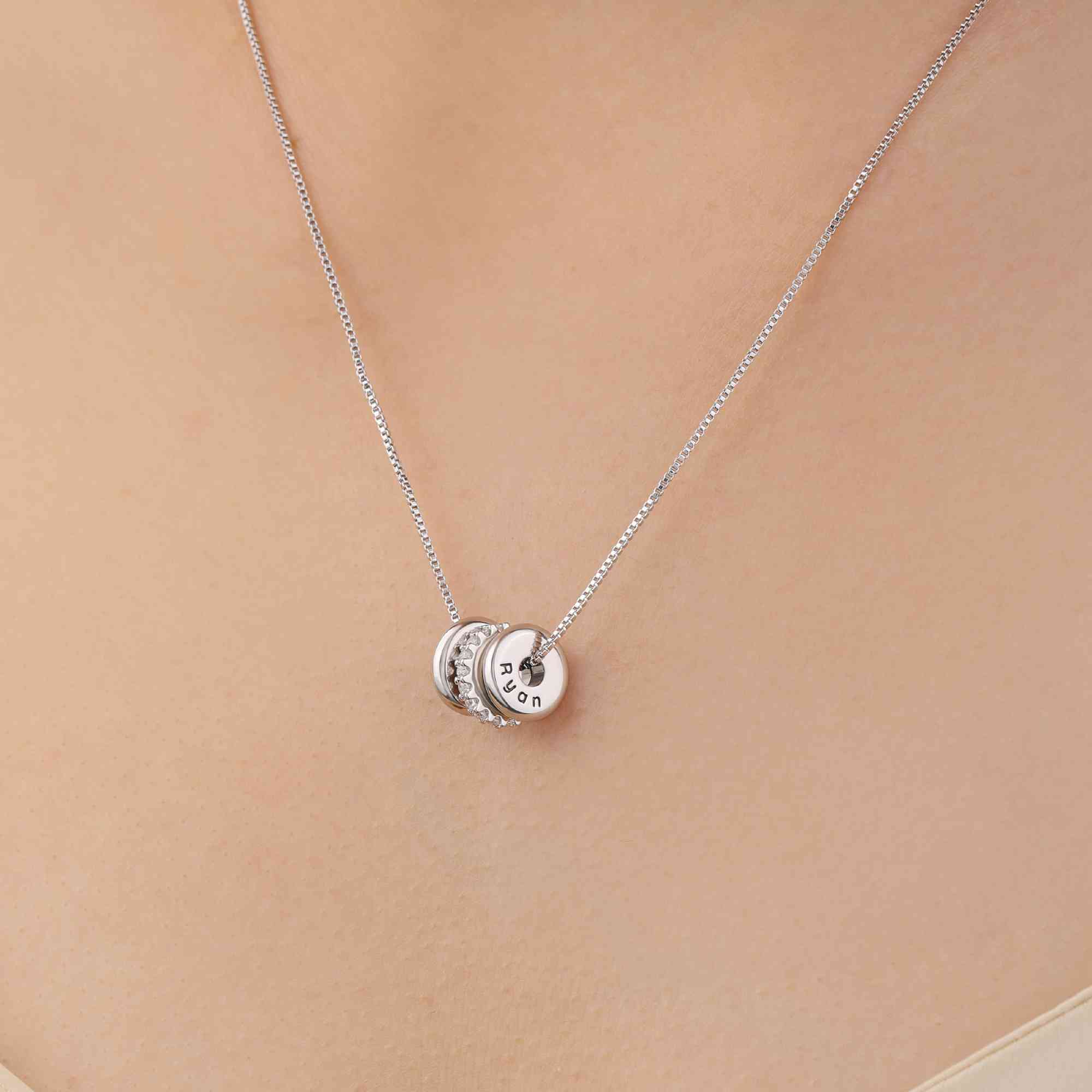 Personalized Engraving - This beautiful necklace features multiple interlocking circle charms that can be custom engraved with names, making it a heartfelt piece of family jewelry that celebrates your loved ones.