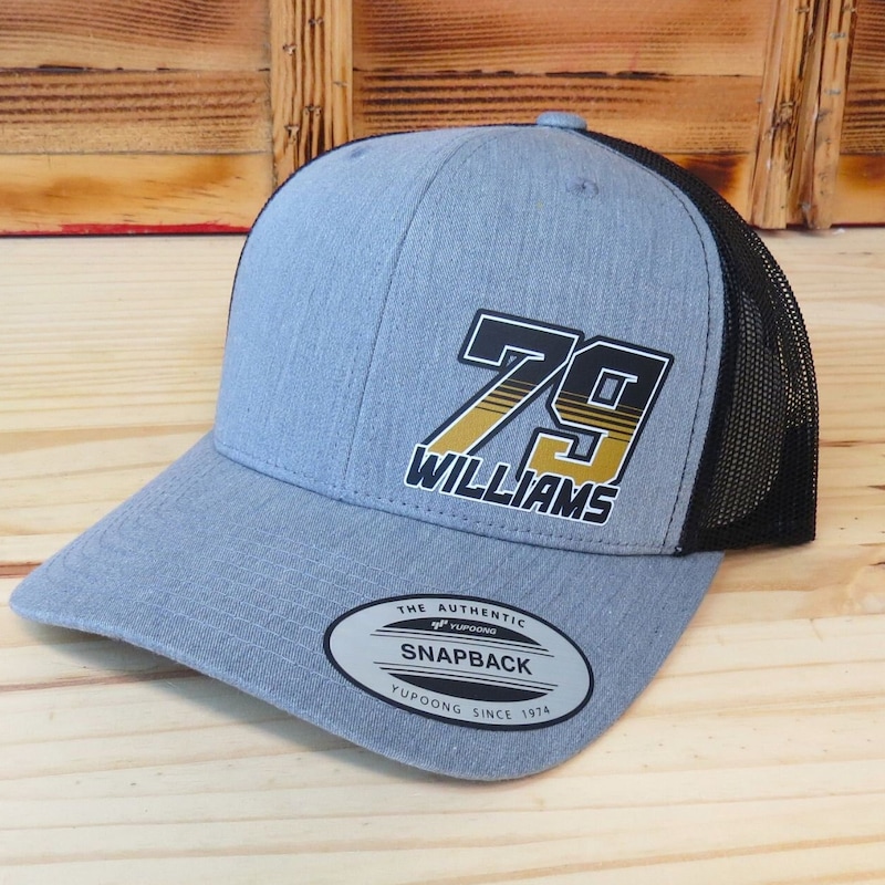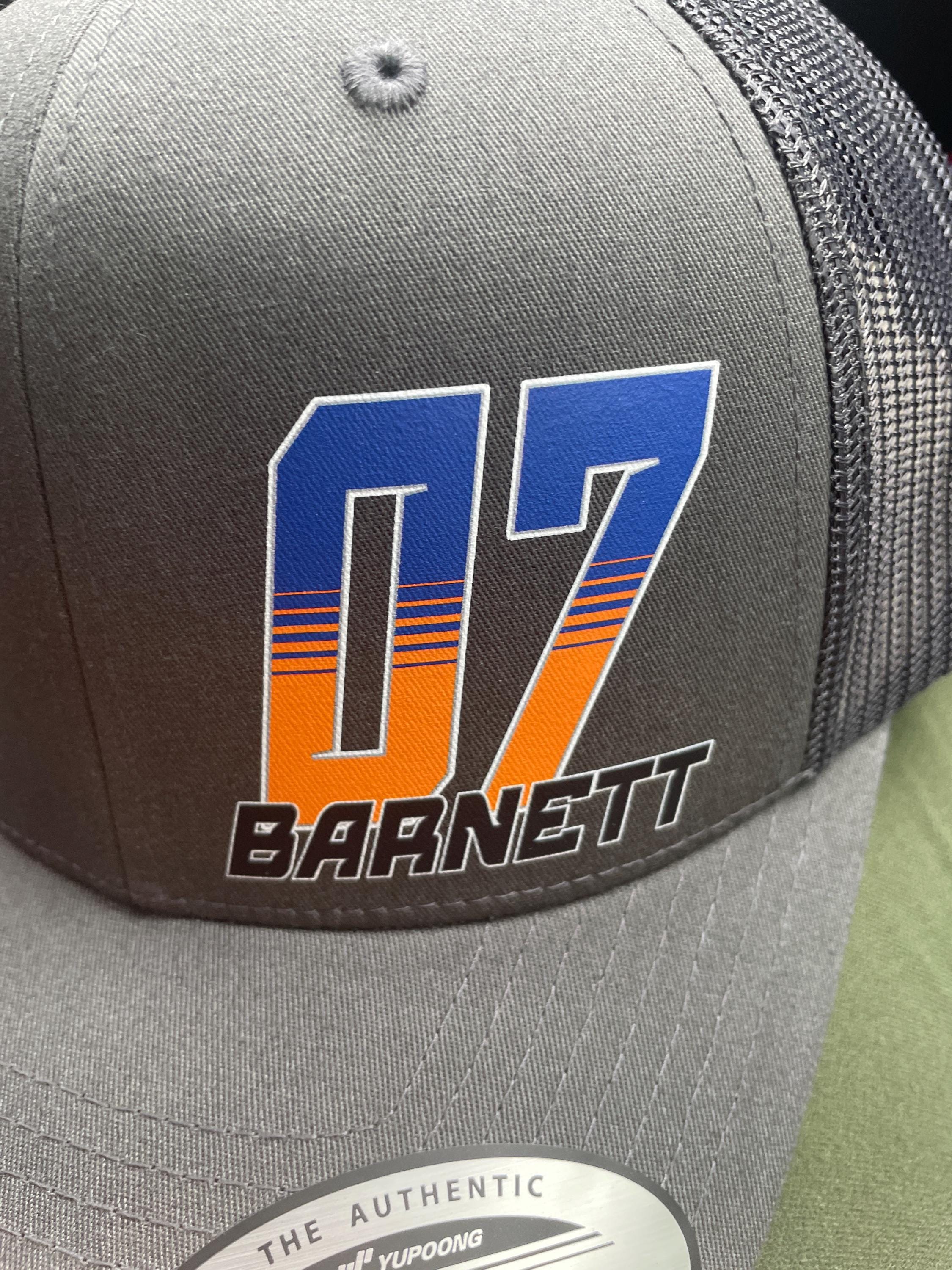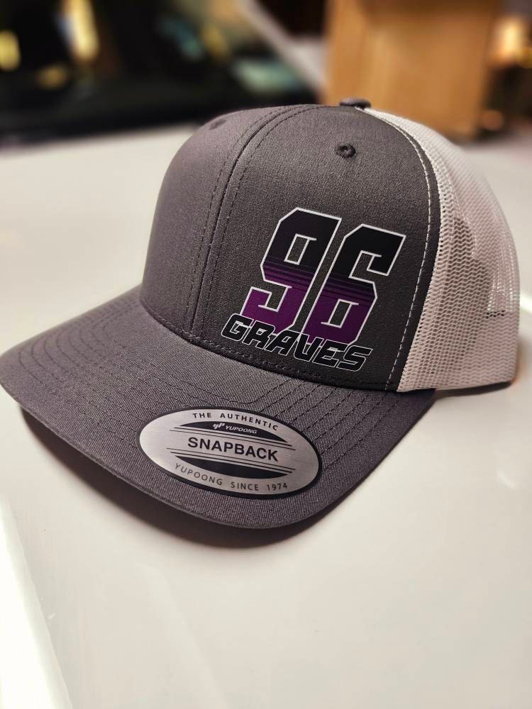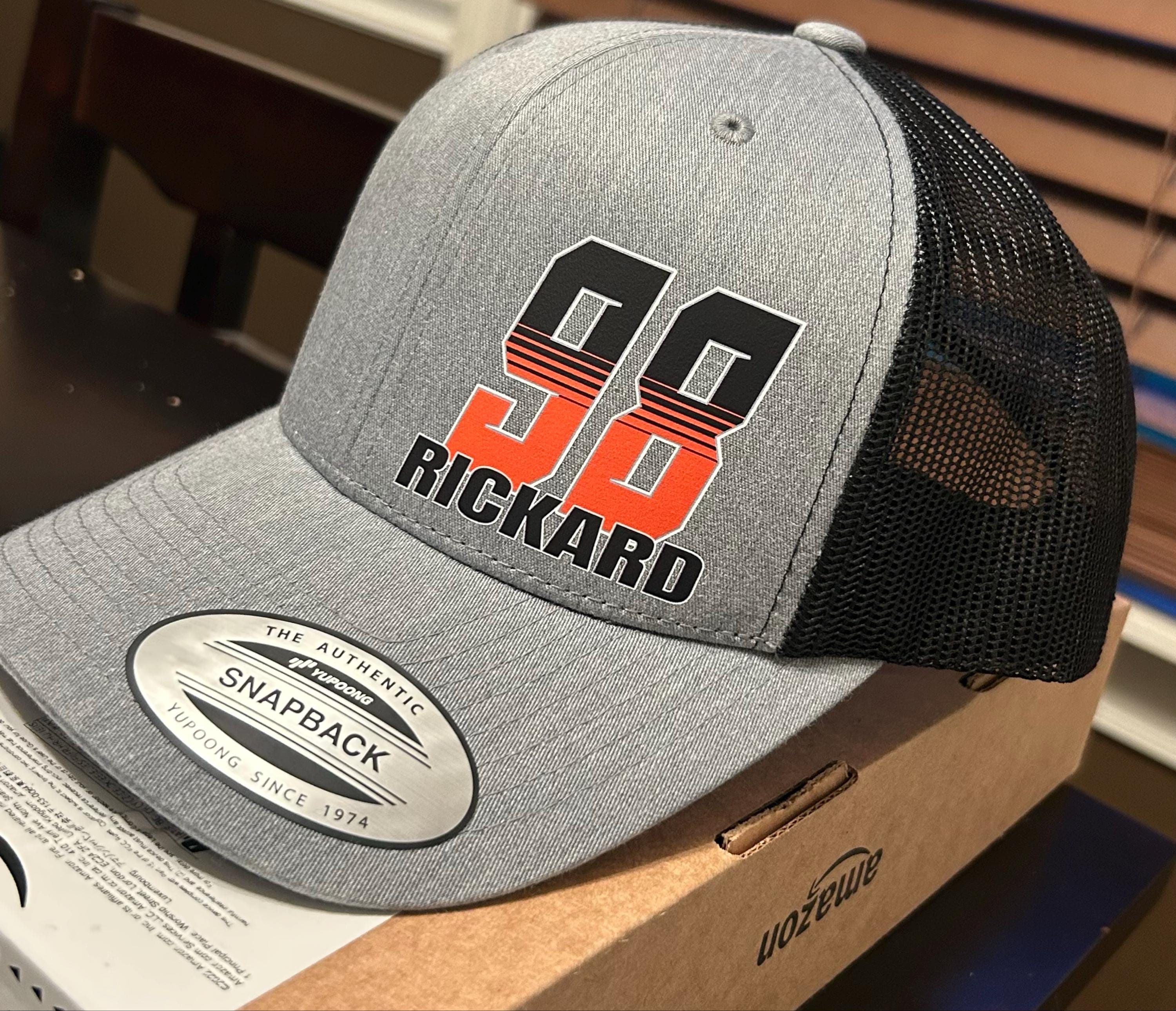 Support your son, daughter, granddaughter, grandson or your favorite racing team with this custom racing name and number hat! Full color print in your choice of colors.