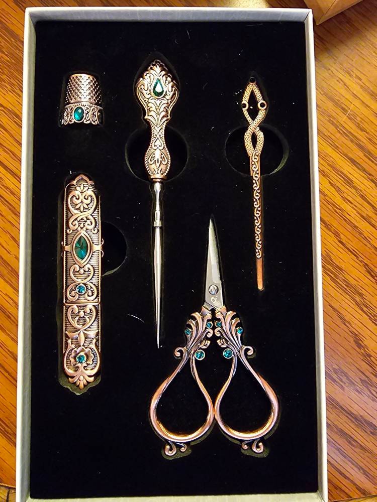 This elegant sewing set is more than just a collection of tools; it's a testament to the art of craftsmanship. Whether you're a seasoned sewer or a beginner, you'll appreciate the high-quality materials and the intricate design that harkens back to a bygone era. Each piece in this set is designed to provide a touch of sophistication to your sewing projects, making your crafting experience both enjoyable and inspiring.