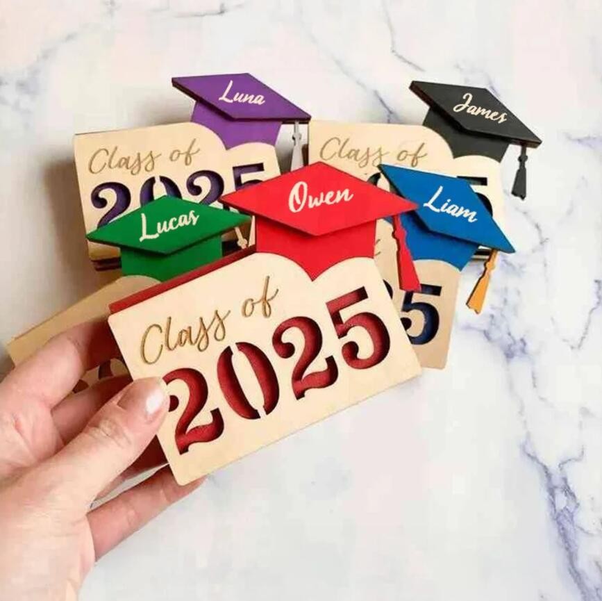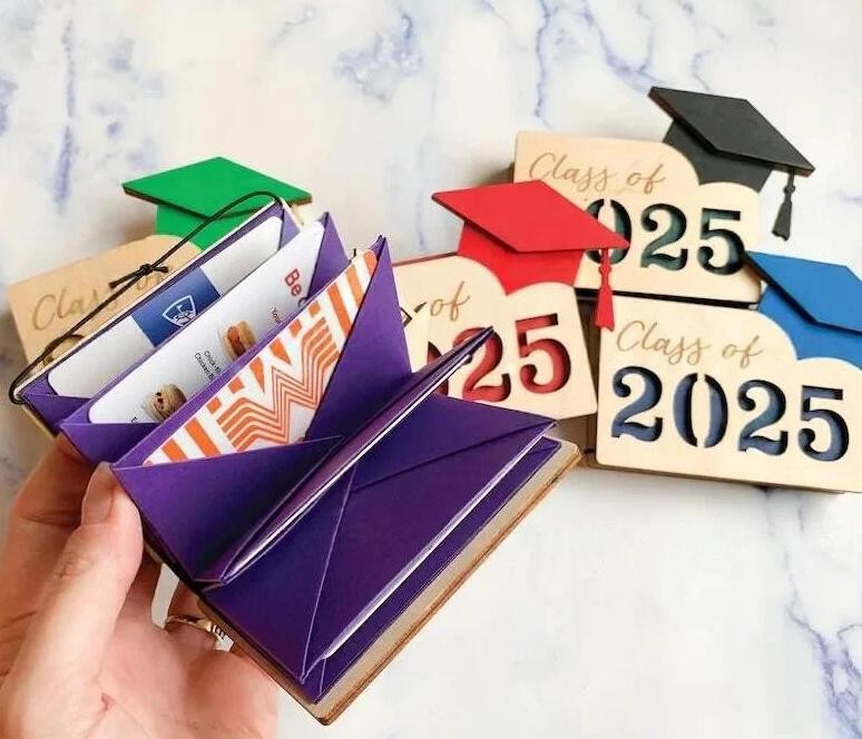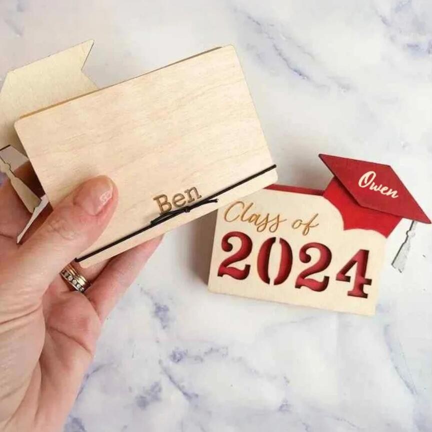 With its intricate design and attention to detail, this gift card holder is not only functional but also serves as a beautiful keepsake for the graduate. It can be customized with the graduate's name, graduation year, or any other significant details, giving it a personal touch that celebrates their accomplishment in a unique way.