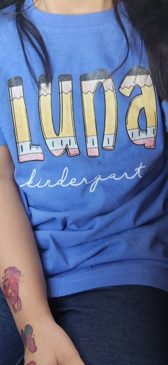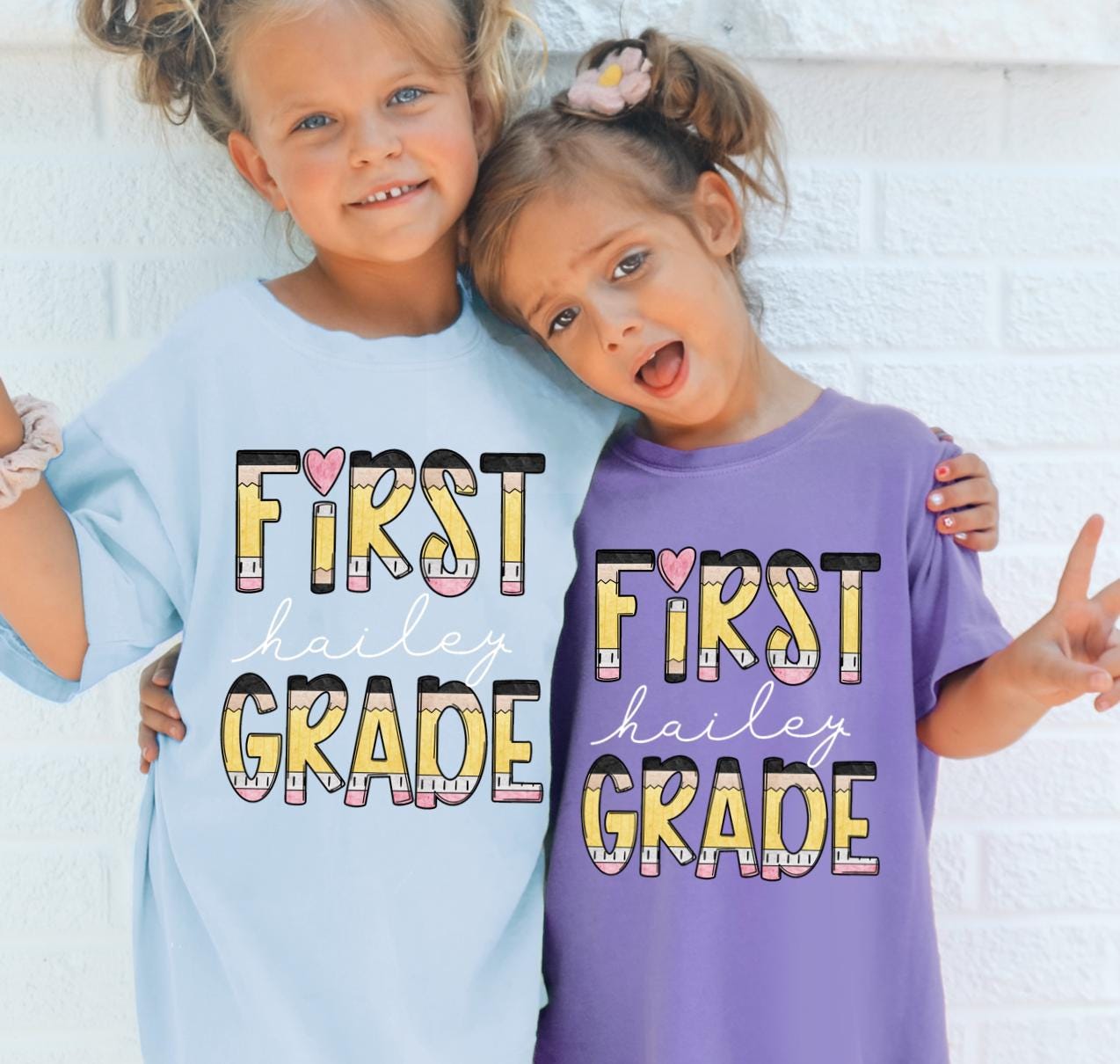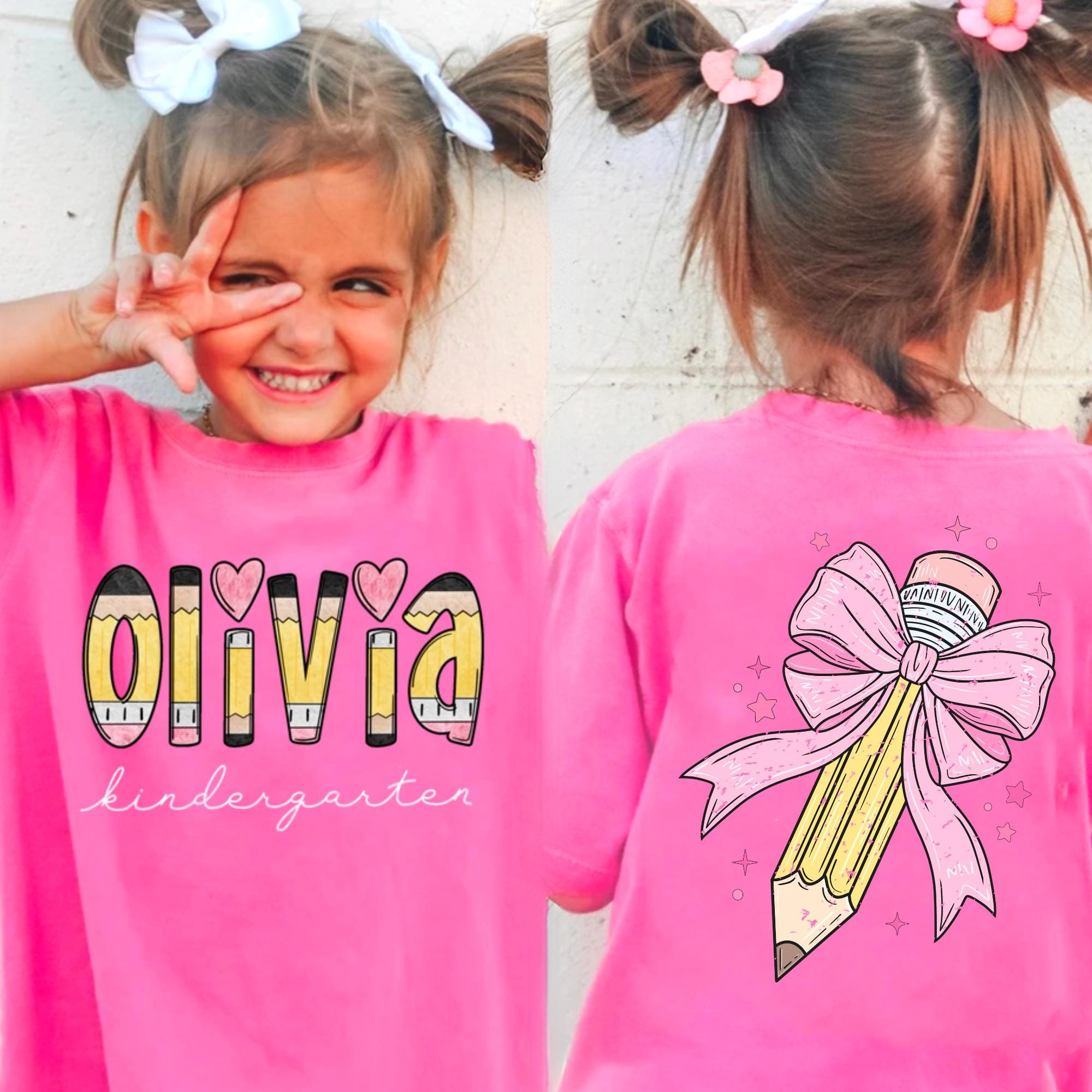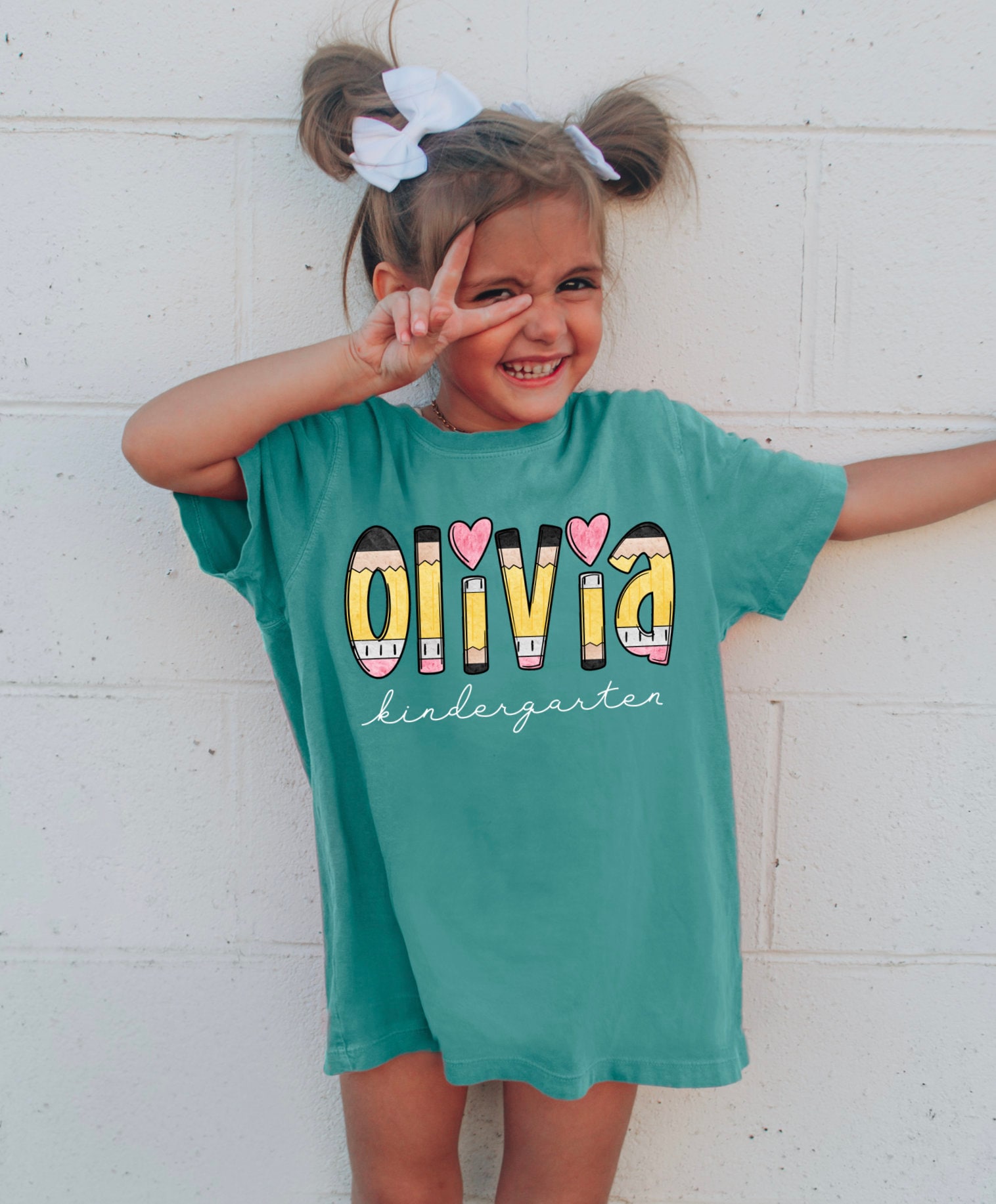 Prepare your child for an unforgettable start to school with our kids' back to school shirt. This adorable first day of school shirt features a custom pencil print, making it a standout piece for any elementary school student. You can print your child's name to create a one-of-a-kind custom pencil kids name shirt that they'll love.