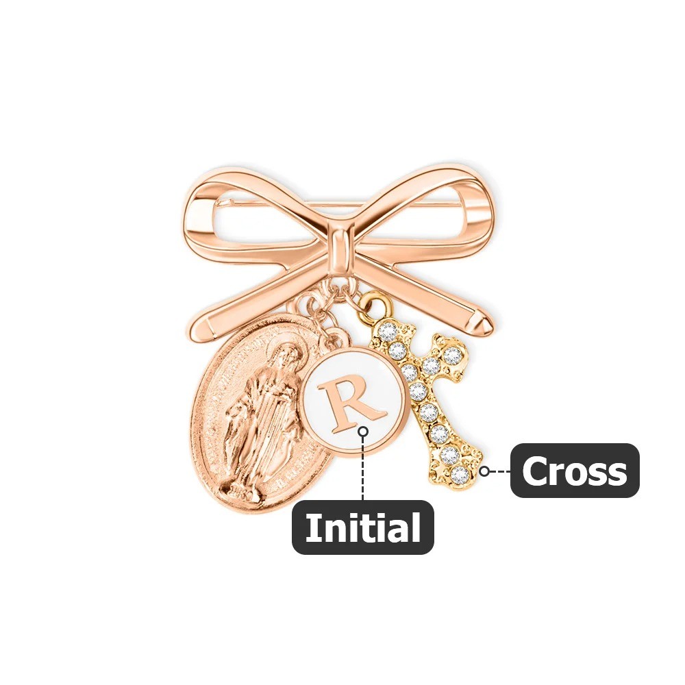 | Style | Personalized Initial Bow Virgin Mary Charm with Cross |