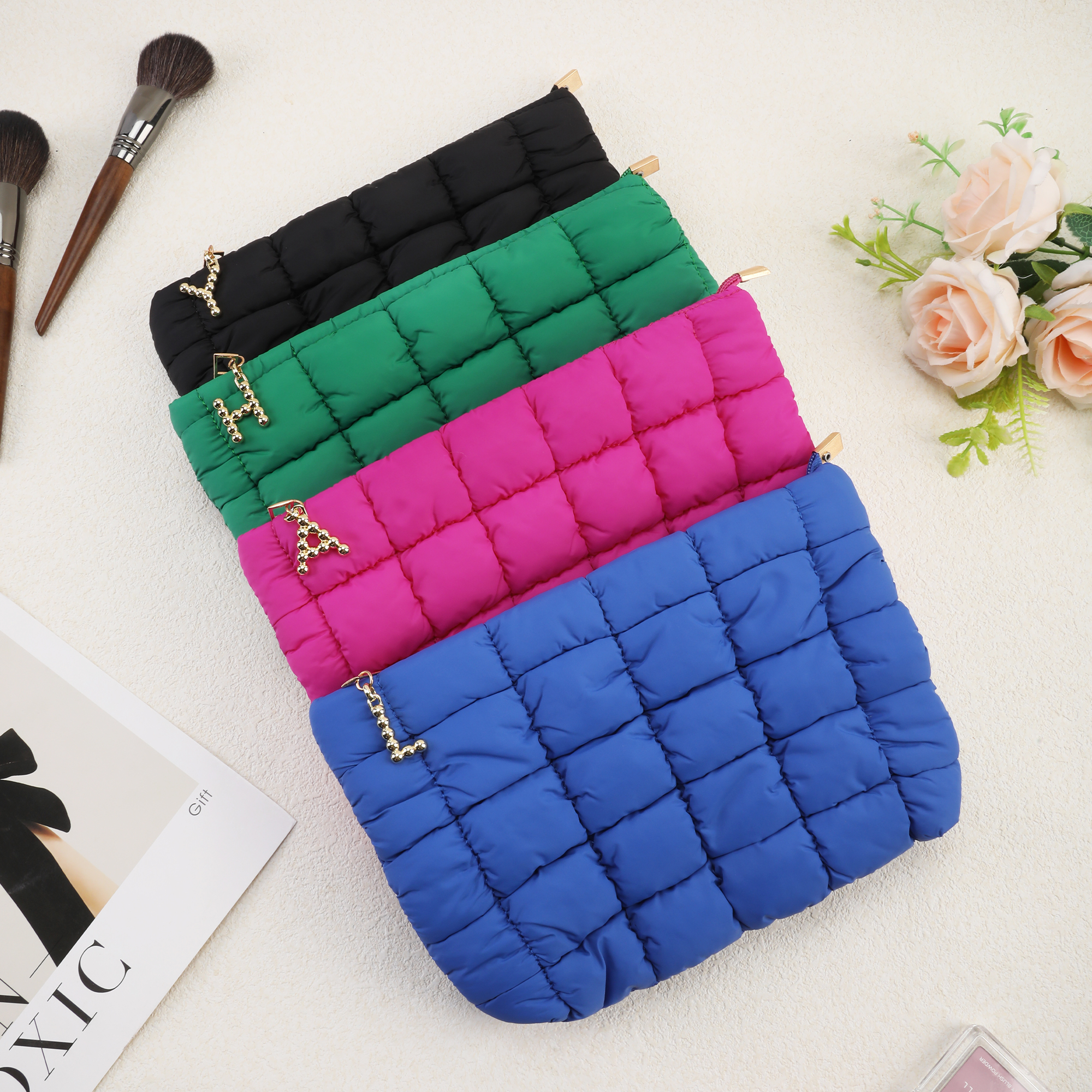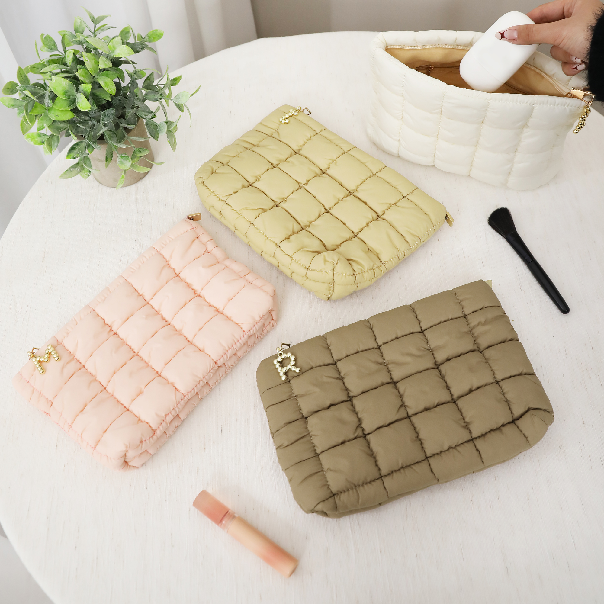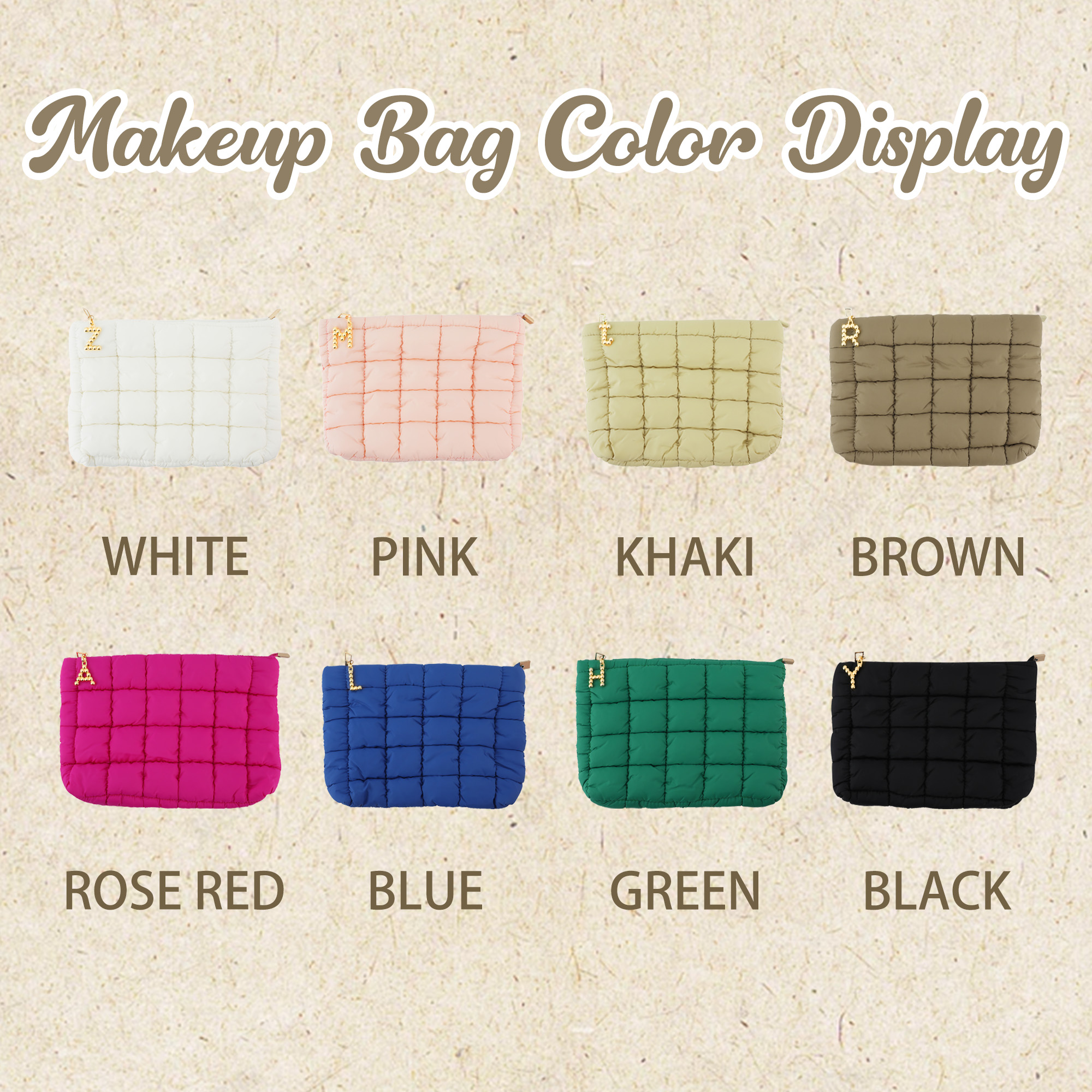 Charming Quilted Design - This quilted makeup bag features a soft, puffy texture with a stylish initial zipper detail that adds personality to your everyday essentials. The colorful quilted pattern brings a playful yet fashionable look, while the adorable design keeps your beauty items organized in a bag that feels both unique and eye-catching.