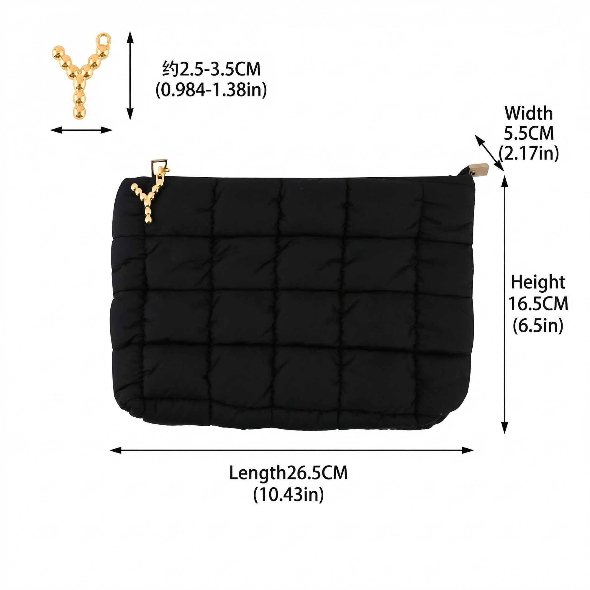 Makeup Bag: 26.5*5.5*16.5CM(10.43*2.17*6.5INCH); Letter Charm: Approx. 2.5-3.5CM(0.984-1.38INCH)