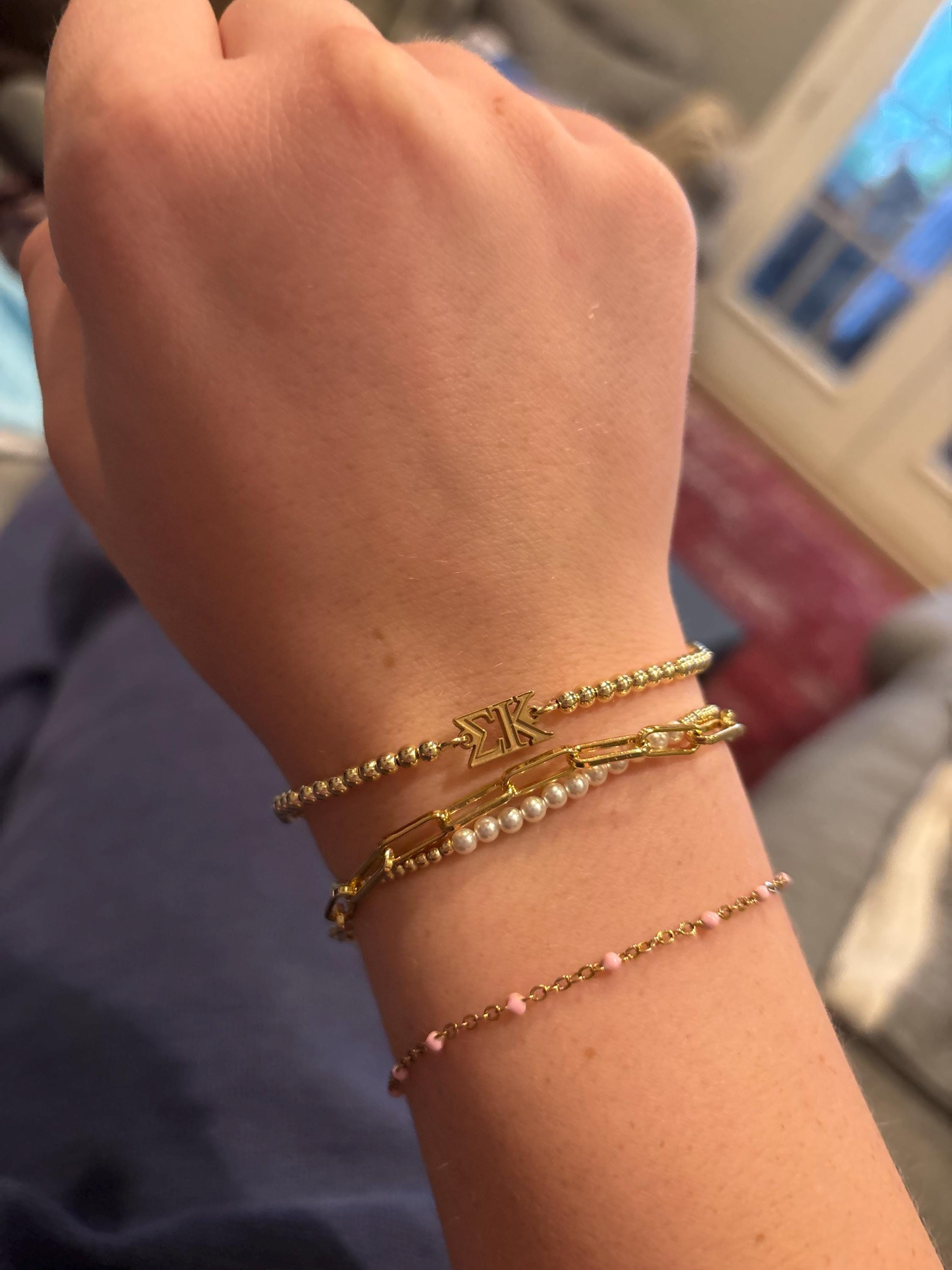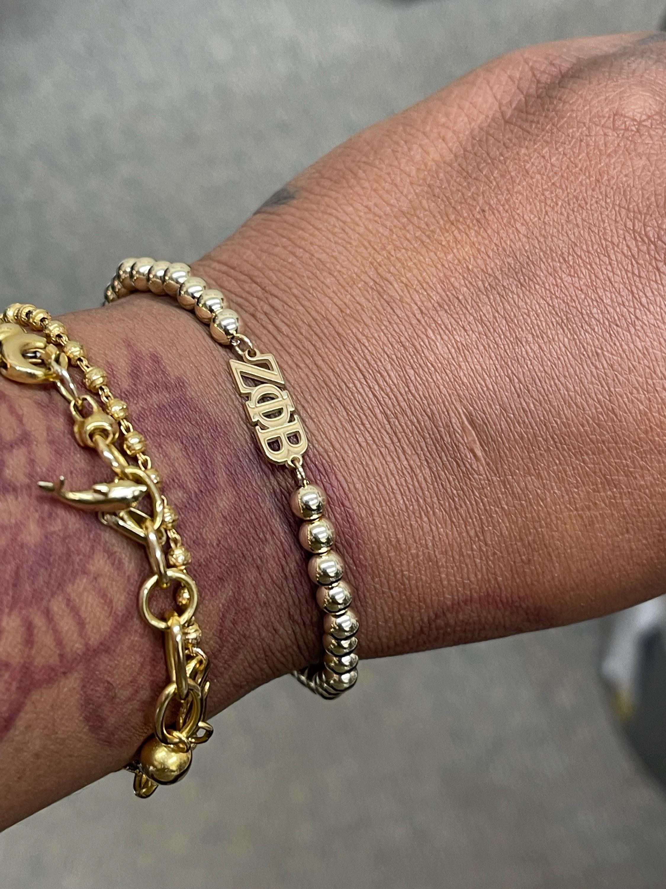 Our best-selling beaded bracelet or anklet features our custom sisterhood logo. Wear it alone for a sophisticated look or layer it with other bracelets for a trendy, statement look that reflects your unique style. All bracelets and anklets are hand-strung with a sturdy bungee cord - comfortable and easy to wear.