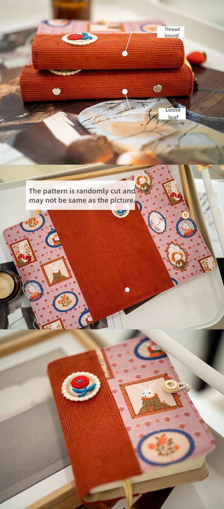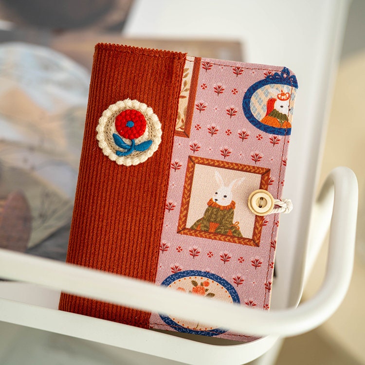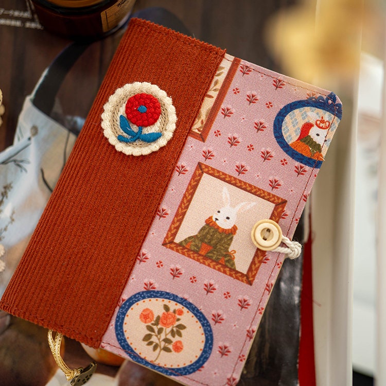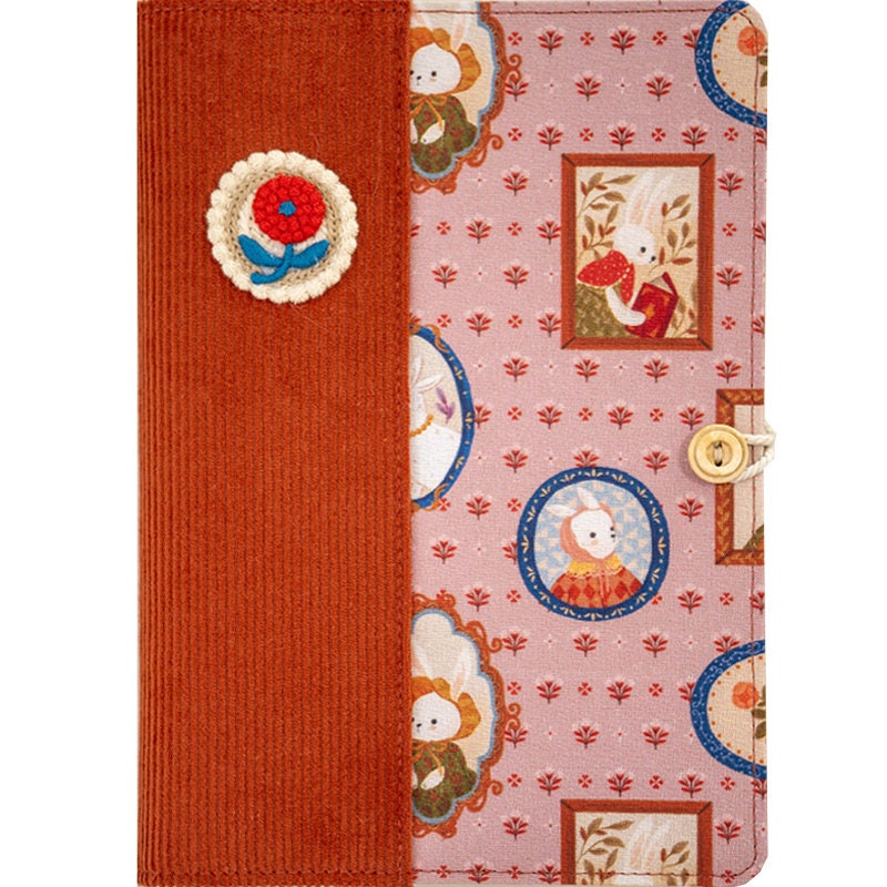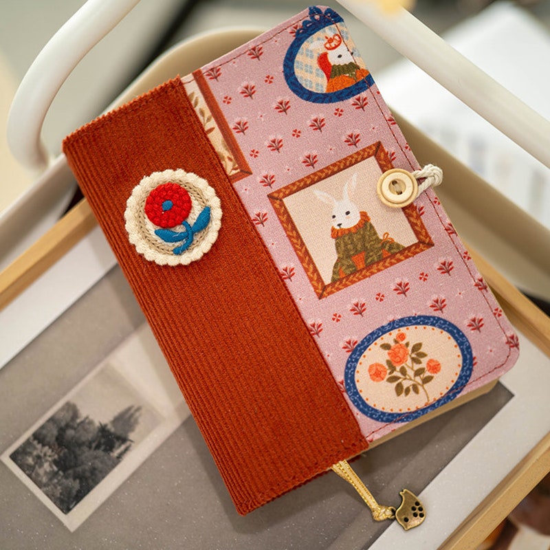 Vantage Corduroy Patchwork Journal Embroidered Flower Notebook A6 A5 Cute Bunny Fabric Notepad Refillable Traveler's Notebook Holiday Gift