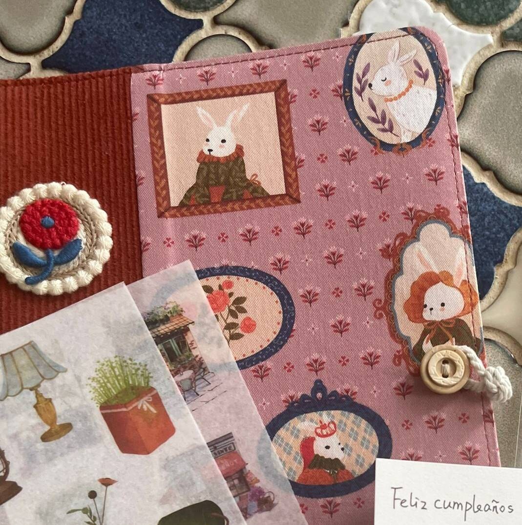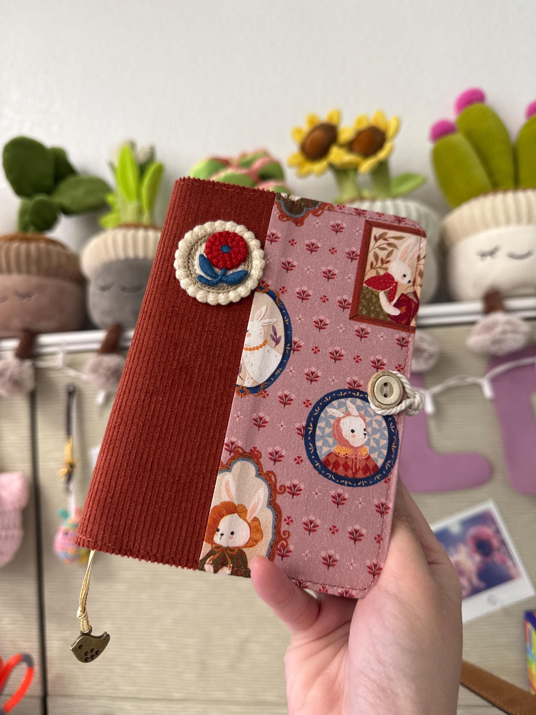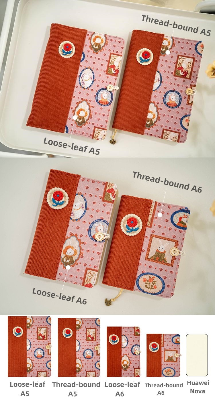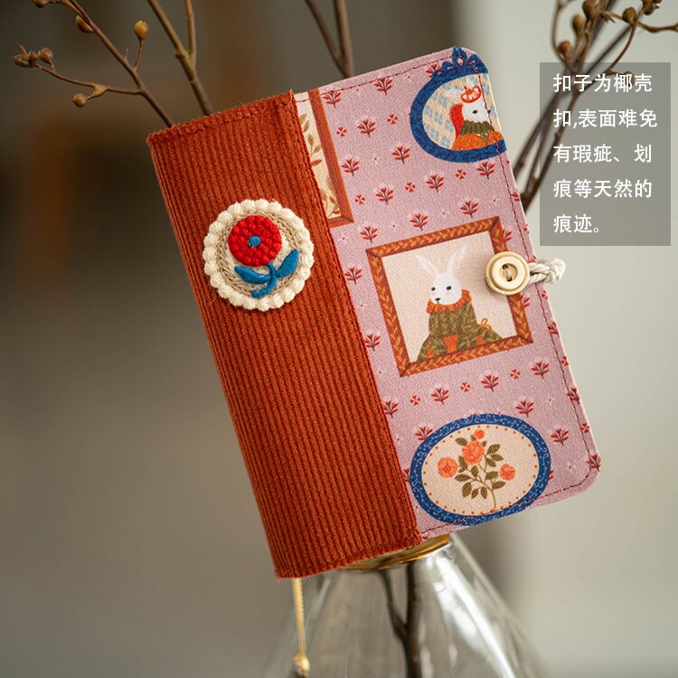 Vantage Corduroy Patchwork Journal Embroidered Flower Notebook A6 A5 Cute Bunny Fabric Notepad Refillable Traveler's Notebook Holiday Gift
