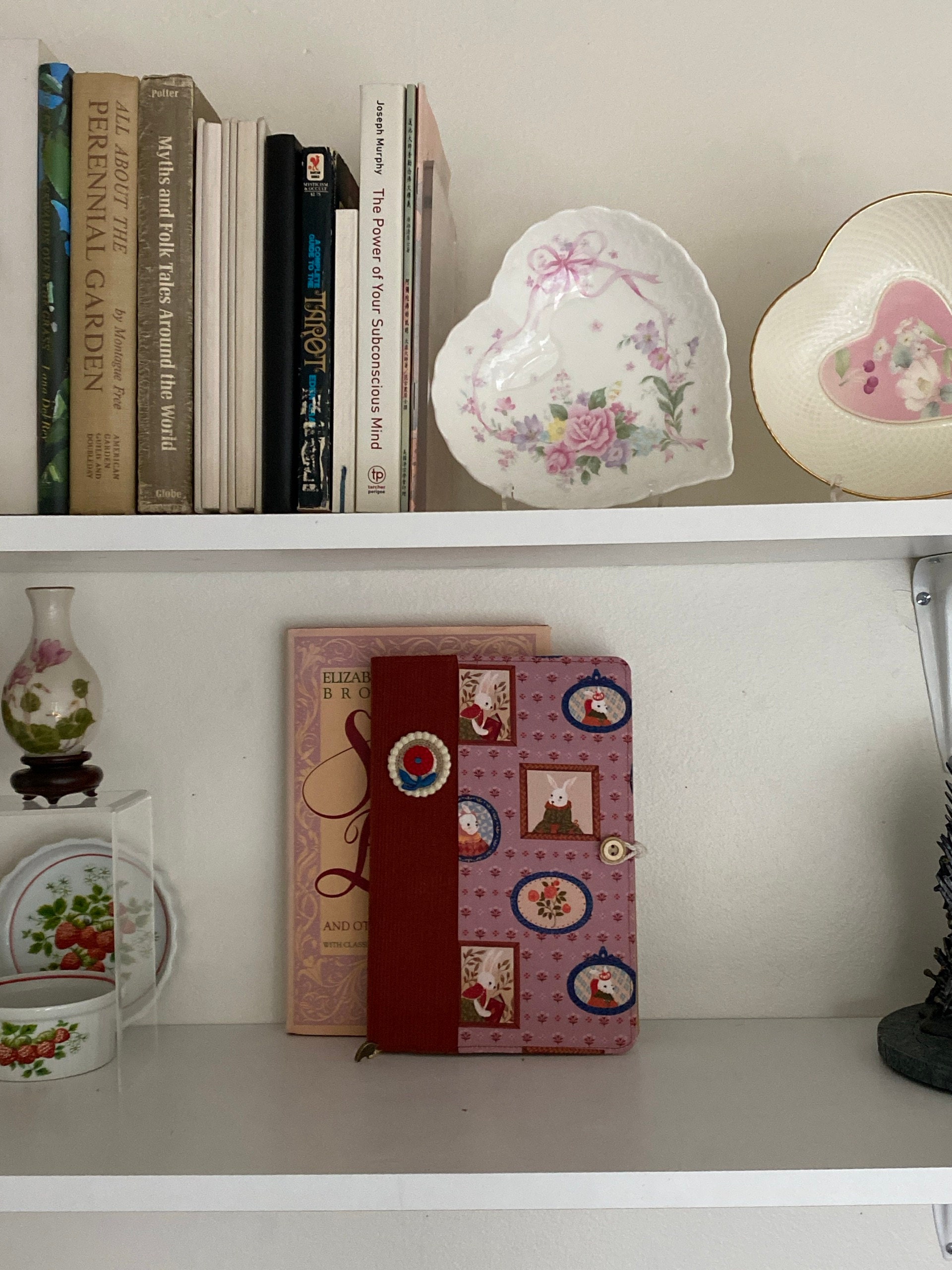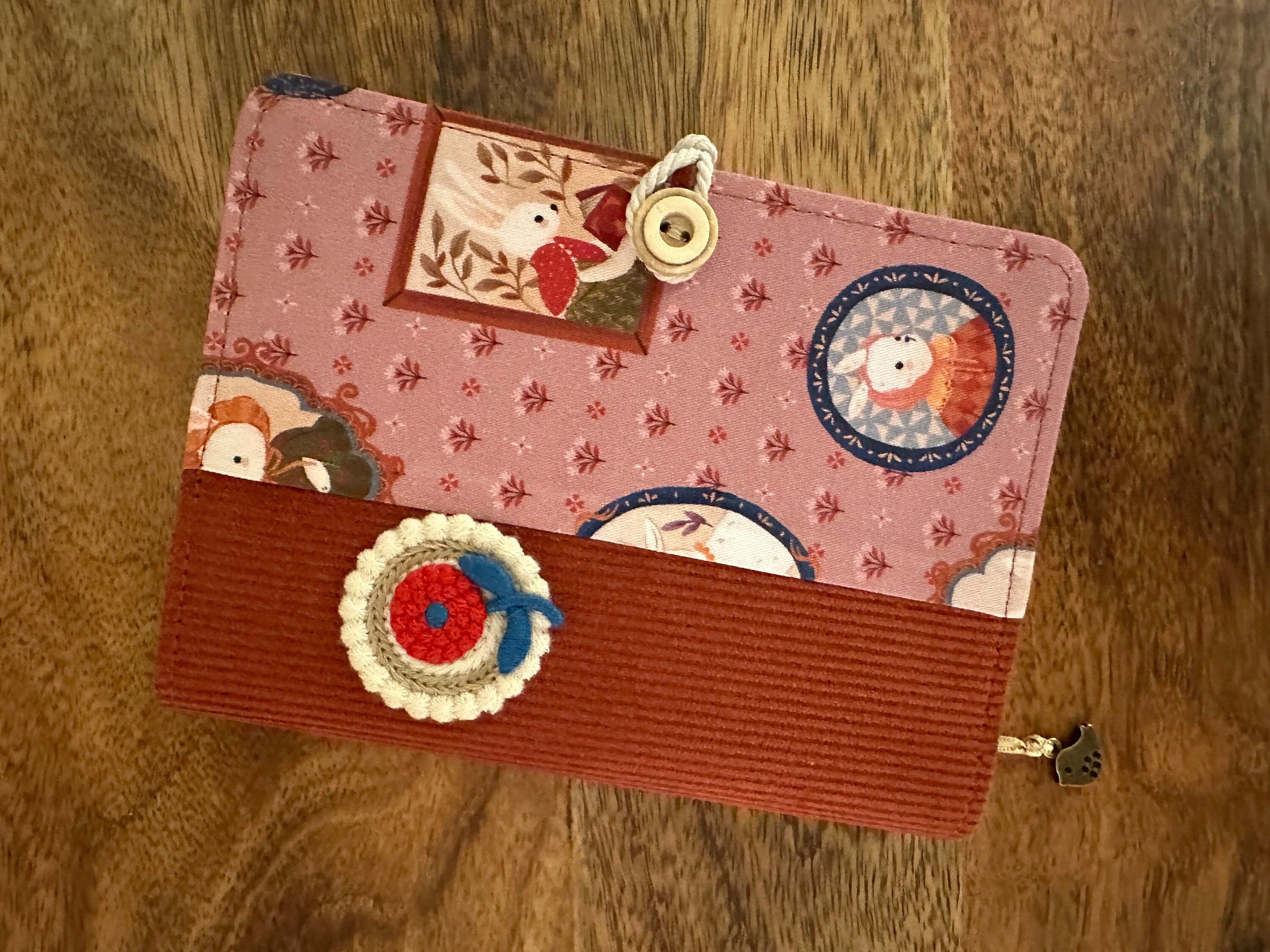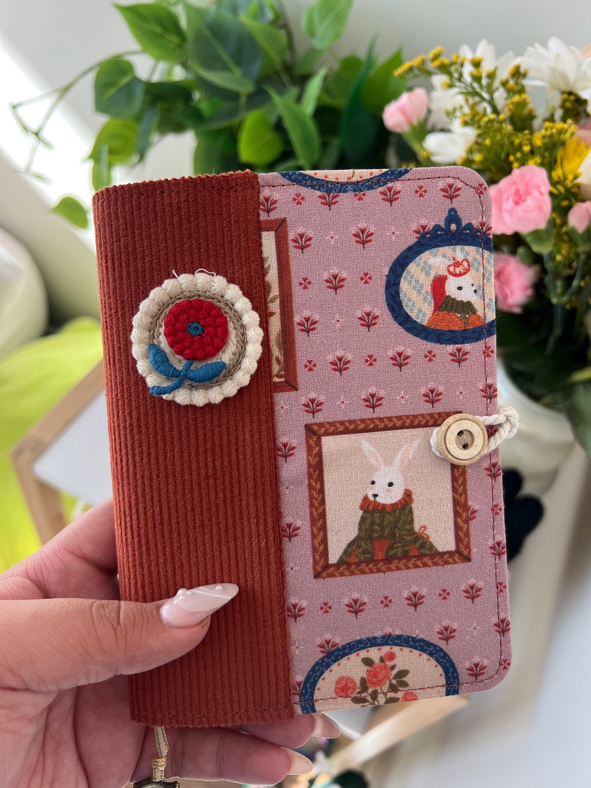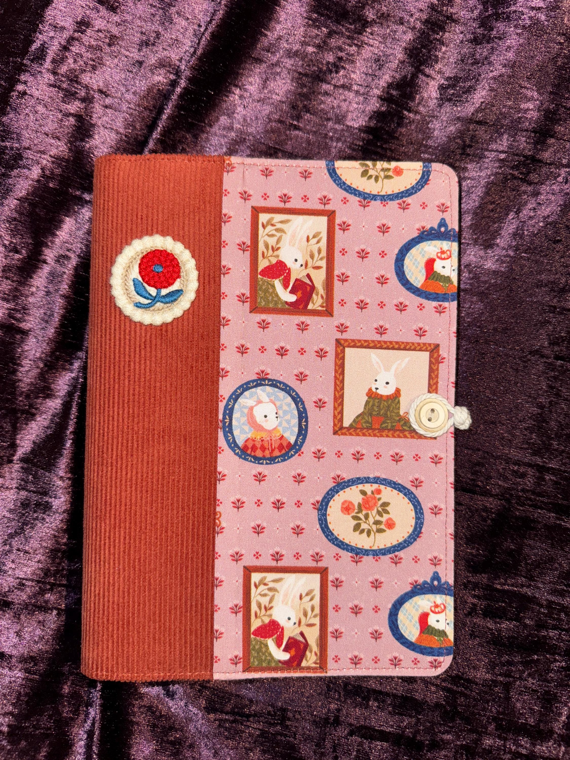 Wool Cover Corduroy Collage Journal with Embroidered Bunny A5 A6 Handmade Rope Notebook Vintage Journal, Special Gift for Her