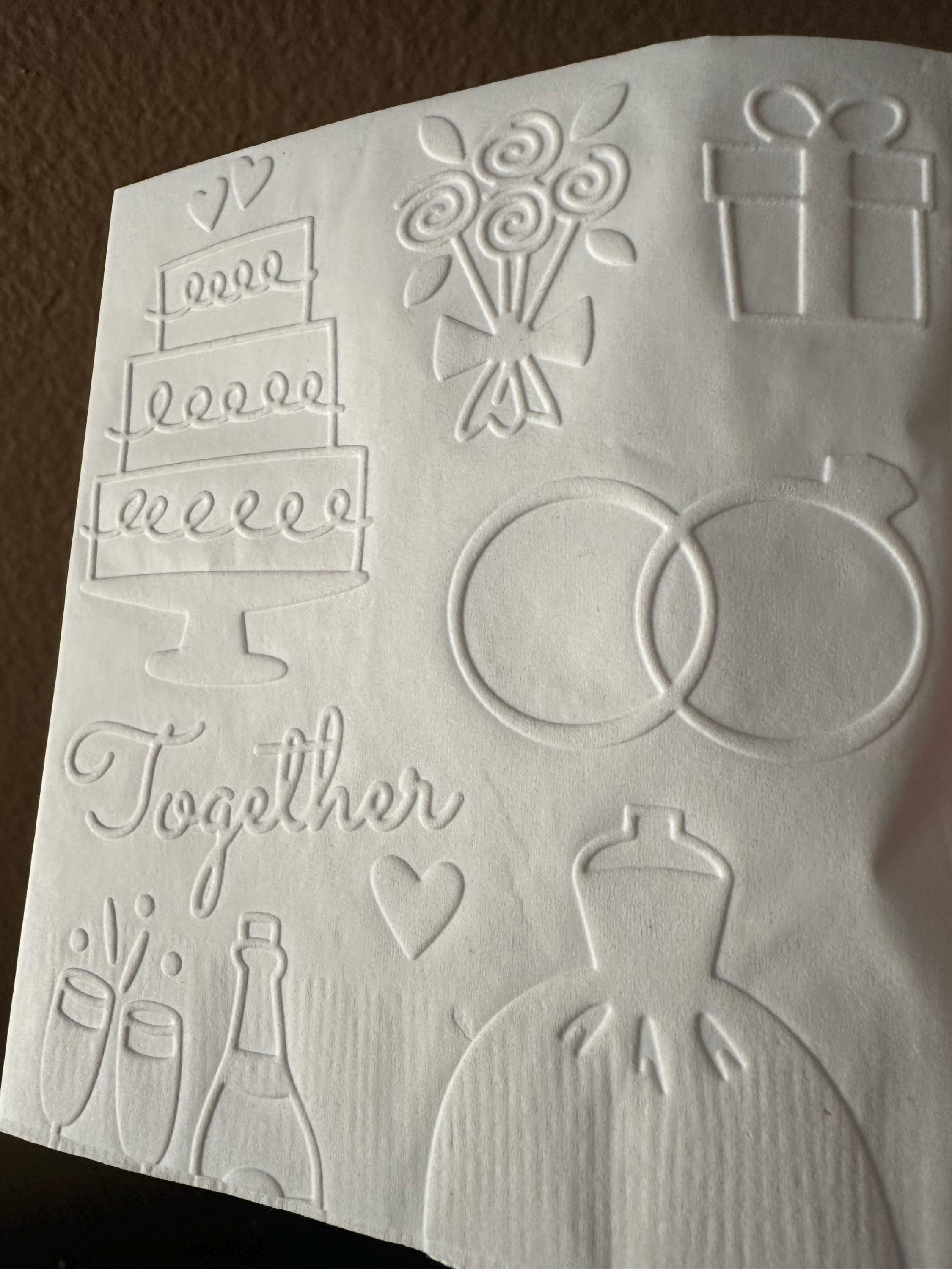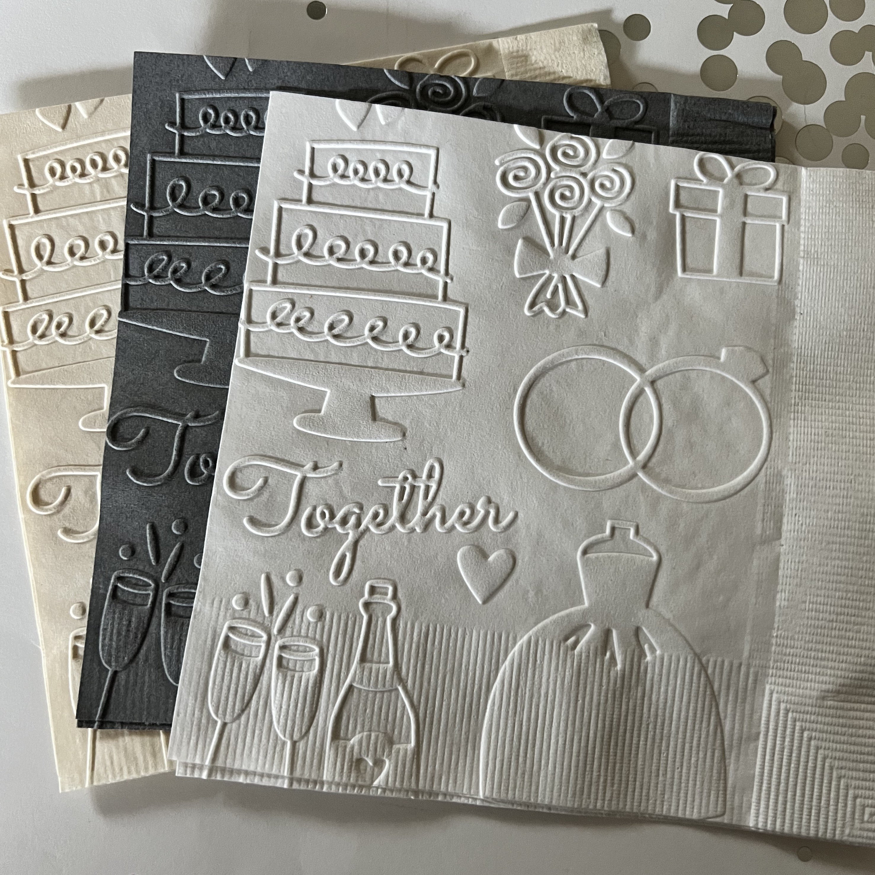 The pattern on the napkins works best on lighter colors and the pattern is detailed, high quality, and visually appealing. Even though we use the best 3-ply on the market, the napkins will "flatten" slightly after being embossed in the embossing machine.