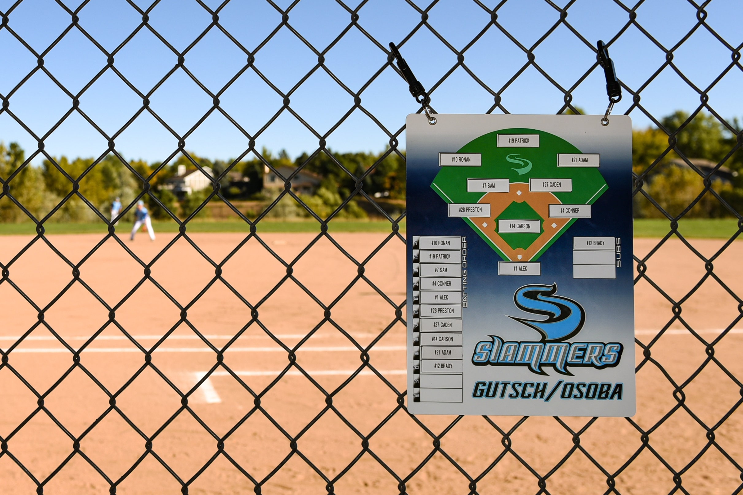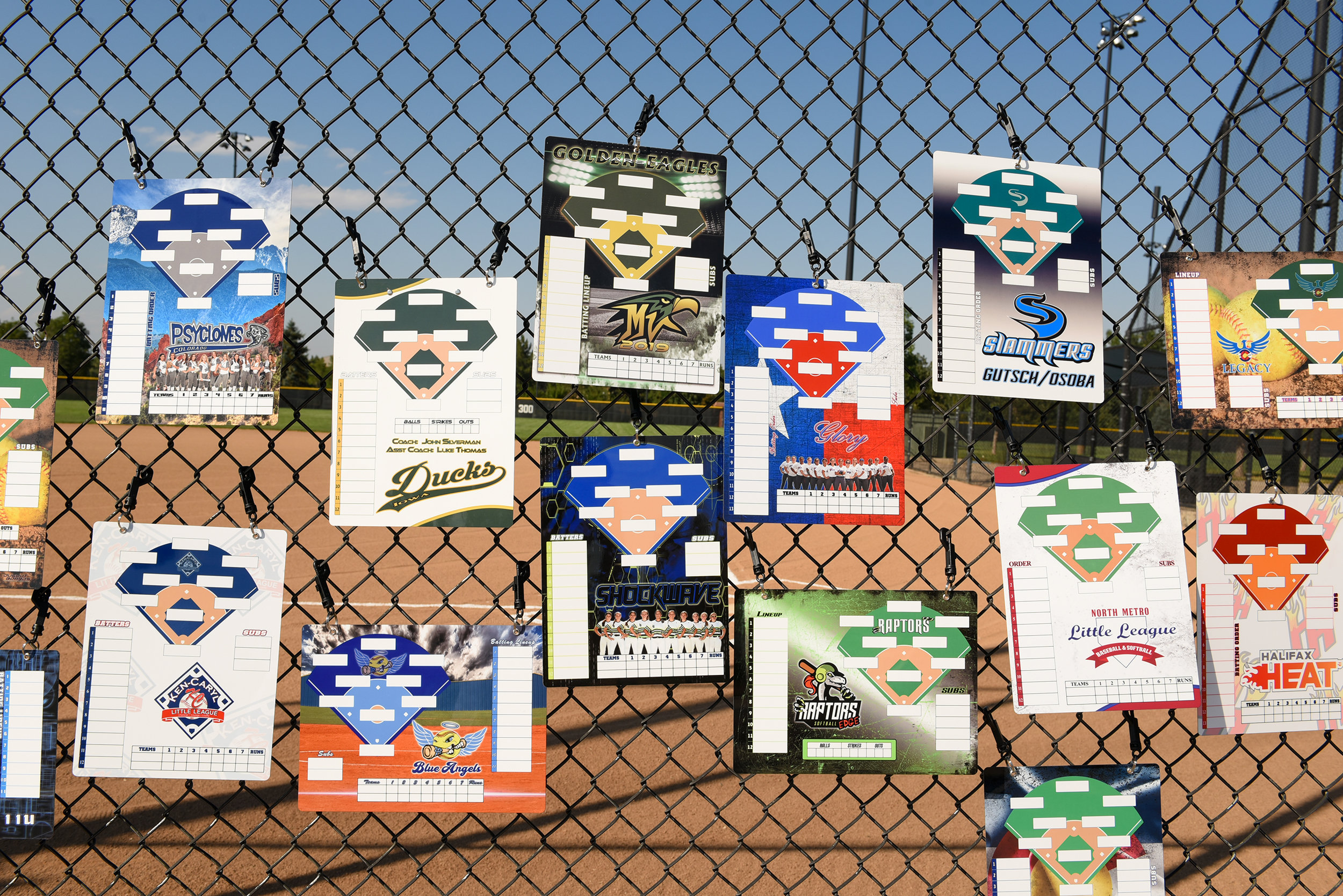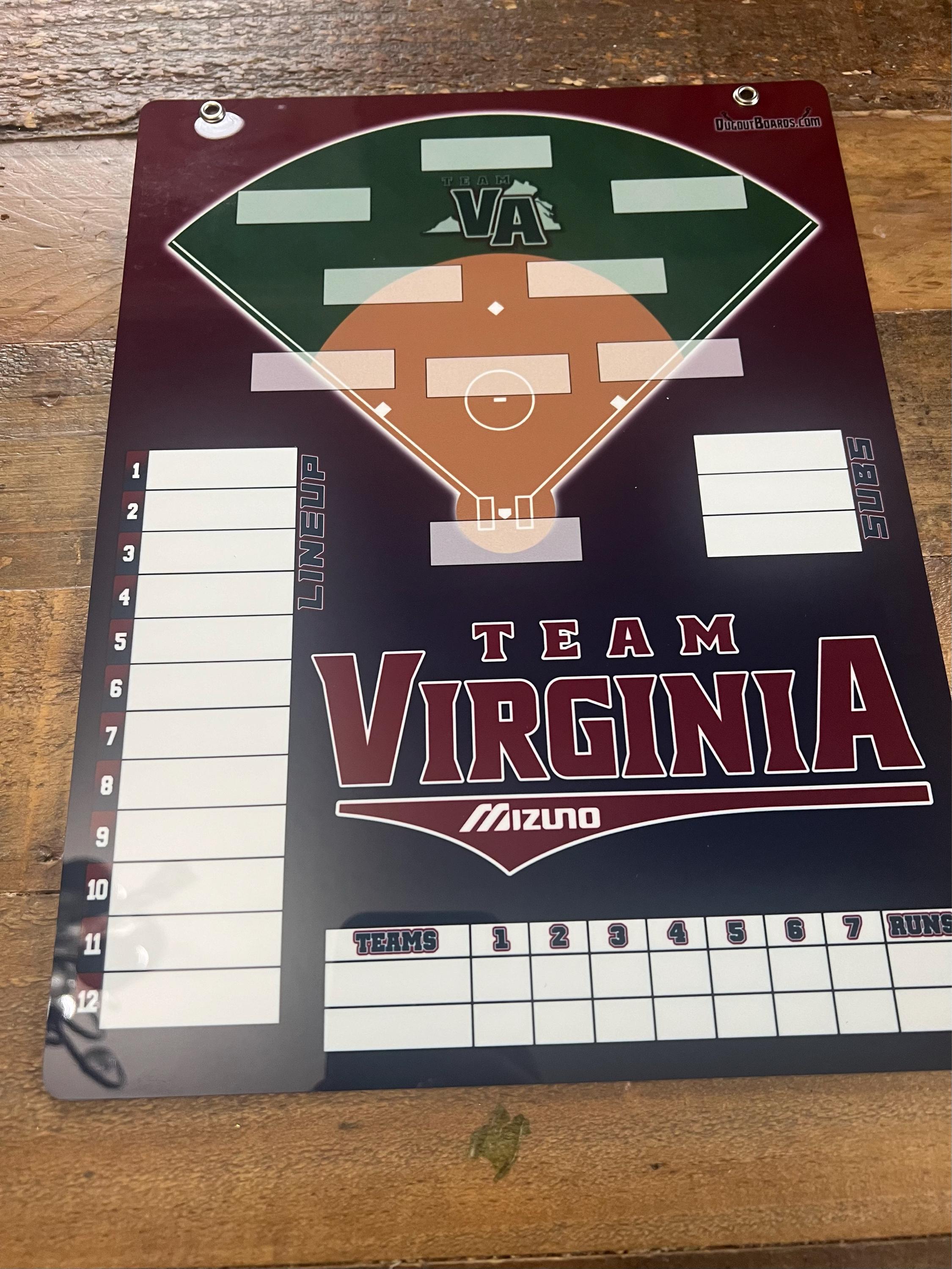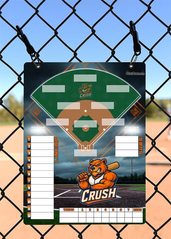 I will create a custom lineup board using your team's colors and logo. You can also add a team photo to the board if you wish.